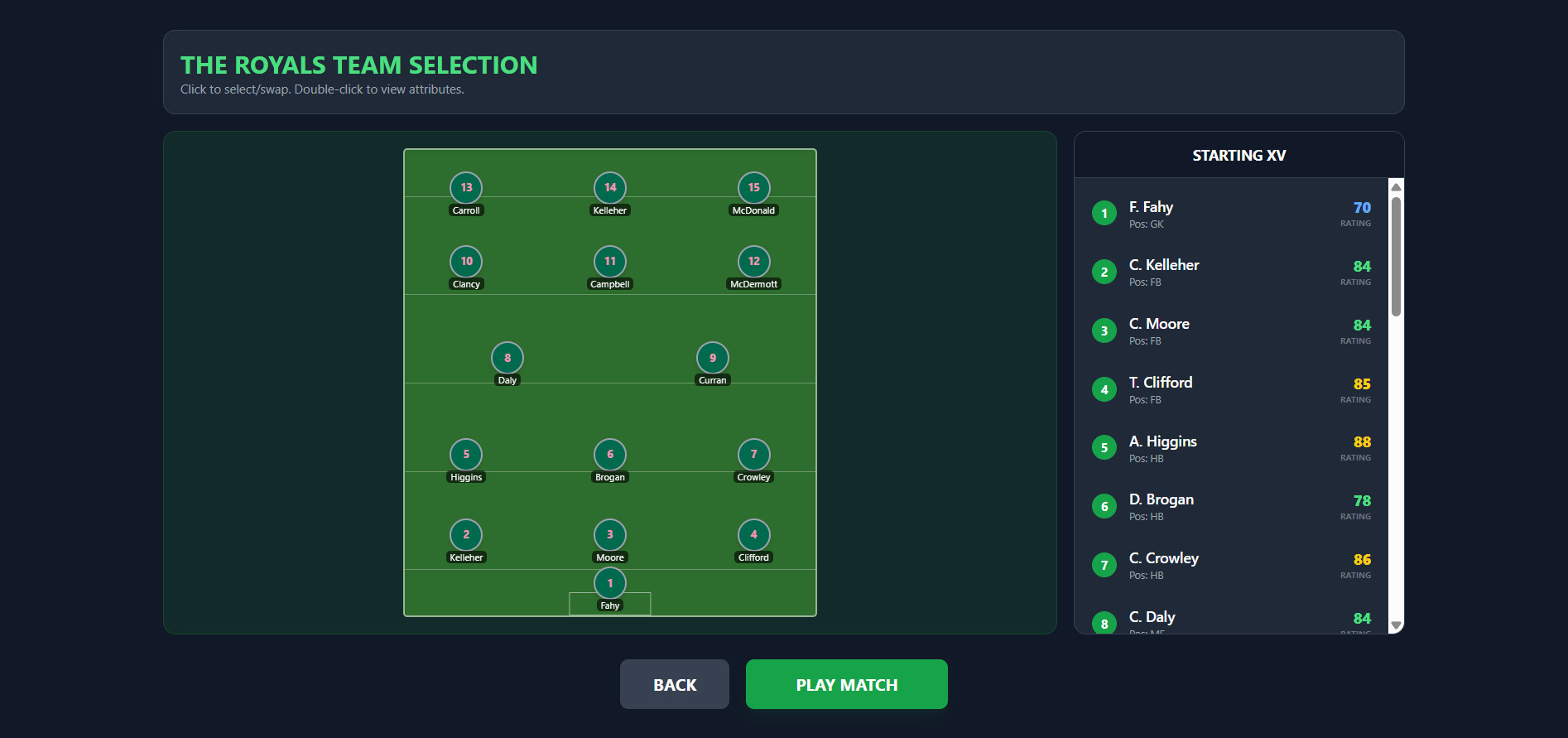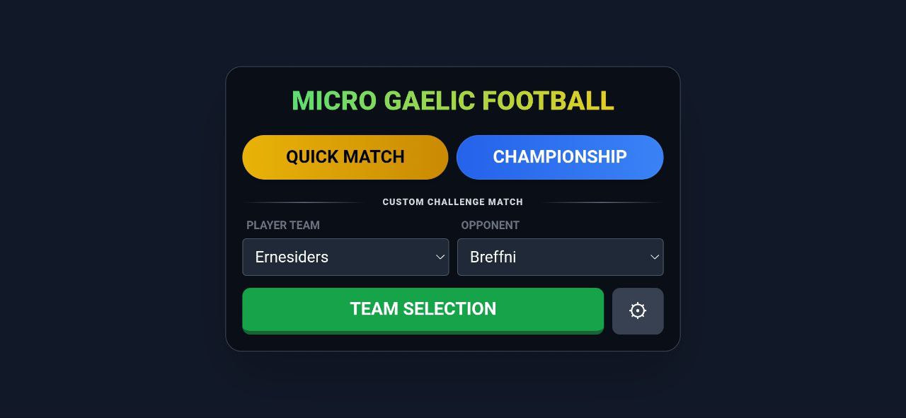 Micro Gaelic Football is a dynamic sports action game where timing, reaction, and ball control are everything. Control your players, make precise passes, powerful strikes, and clever dribbles using just one button with varying press durations. The unique aftertouch system allows you to adjust the ball's flight in mid-air, adding depth and tactical freedom to every moment. Easy to pick up but truly masterful in its details, the game captivates from the very first minutes.