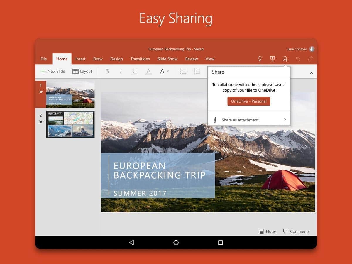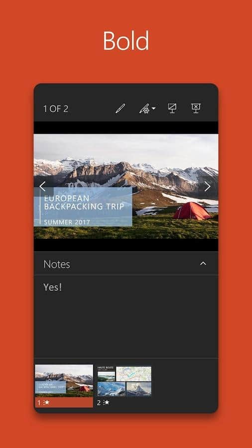 Your favorite app already on the Android platform. App which allows you to quickly create, edit, browse, and run various presentations. If you need on the way to work or school to make changes or just to do a few slides, you will easily be able to do it in a version for Android. PowerPoint in Office is always at your fingertips.