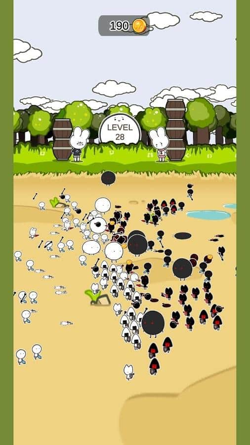 Mini Army – a fascinating arcade on Android in the genre of wall to wall. In this game you will take part in a dynamic and epic battle which will take place in your phone or tablet. Gather your invincible Aria and challenge rivals, who will be on the other side from you. Control cute characters that have unique appearance and weapons and lead them to victory. Assemble your army of ten units and enjoy large-scale battles. Level up and upgrade your army during the game and make it invincible.