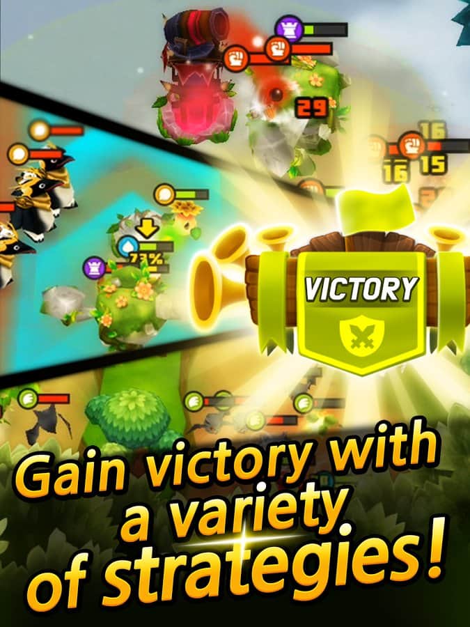 Minion & Magic – strategy on Android where you will help the goddess of the forest to defend from the monsters. In this game you will lead a small band consisting of inhabitants of the forest and sent them into battle with horrible monsters. In order to defeat your enemies, your main task will be to get closer to their base and destroy it. With each new level of the game on the field of battle will be new opponents, which is not so easy to win. Enlist the help of all-new warriors and invoke the aid of the goddess of the forest. Play this game and enjoy the fast paced gameplay, numerous characters and funny monsters.