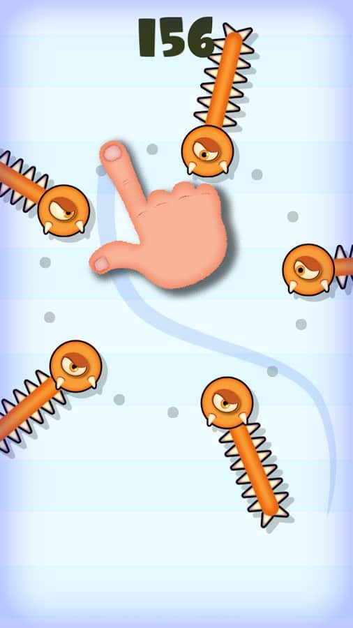 Mmm Fingers Is a game for real fans of hardcore, forget about the boring runner, it will change everything! The bottom line is that you should go as far as possible without hitting any obstacle, and they to the word moving, but not releasing your finger from the screen! If you hook a monster, or release your finger, you lose. No donation or boring legwork, only hardcore.
