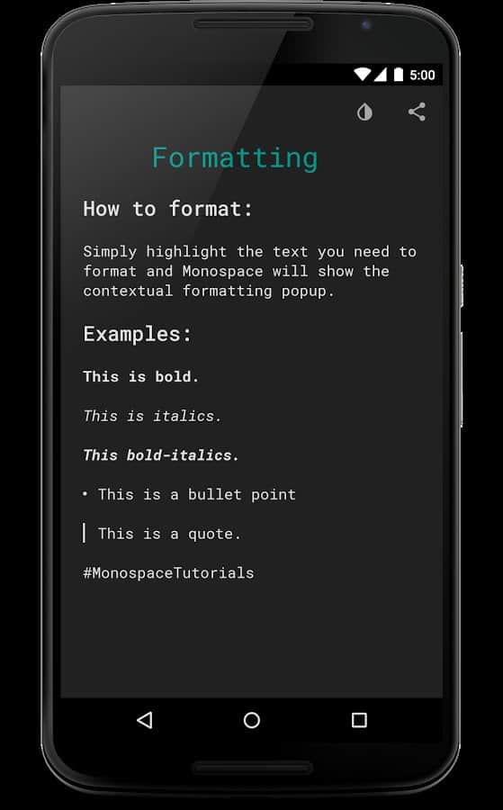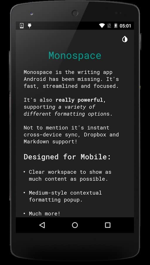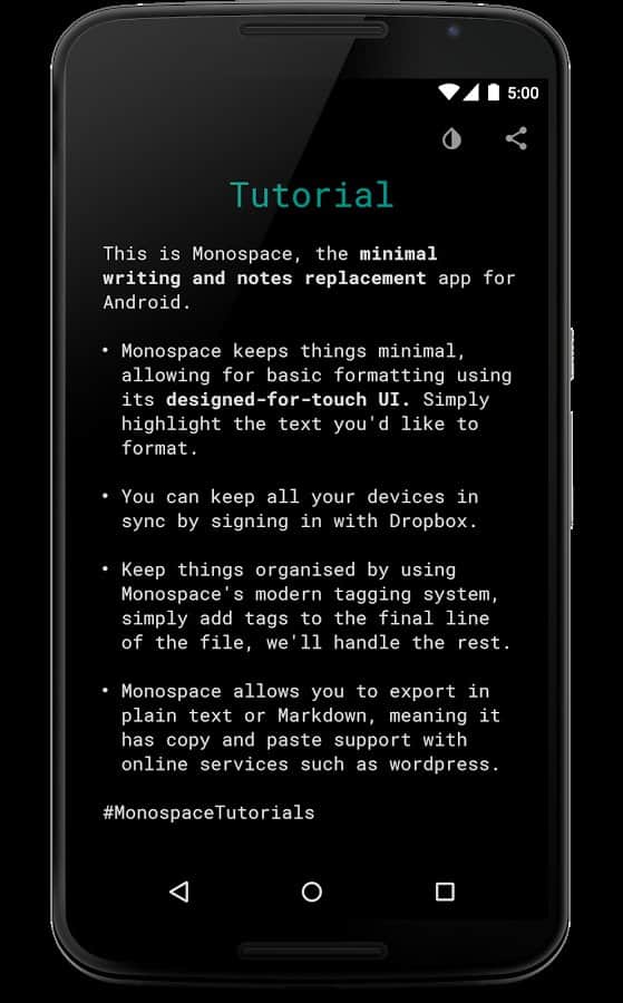 Write notes, or even short sketches on a smartphone or tablet is easy and pleasant, but sometimes the accompanying app is so overloaded with additional elements that work with them becomes difficult. Monospace Writer editor another kind, there is nothing superfluous, only the most basic.