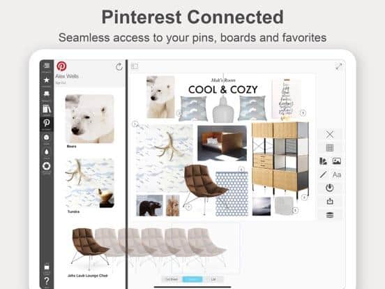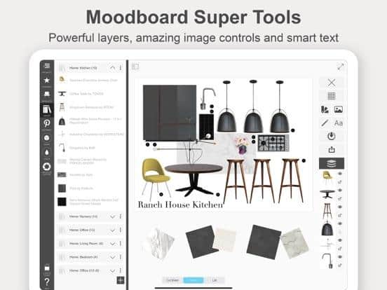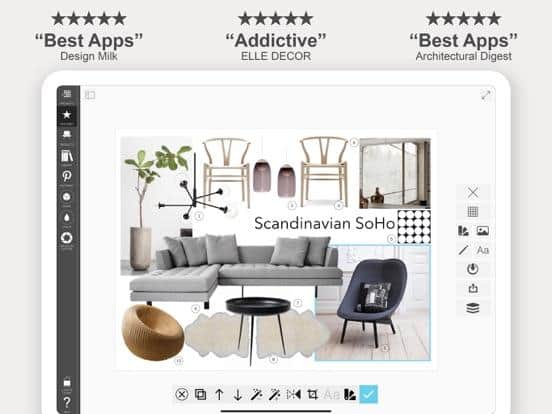 You can create an interior collage, integrate it and edit it using the Morpholio Board program for professional designers. Sketches, drawings, collages, interior boards - all this can be created in the application in a matter of minutes. Collect whole collections of items and join groups. Compose collages using special tools, illustrate projects, use original fonts, use automatic generation of cut sheets and spreadsheets. Apply various filters and elements to the image.