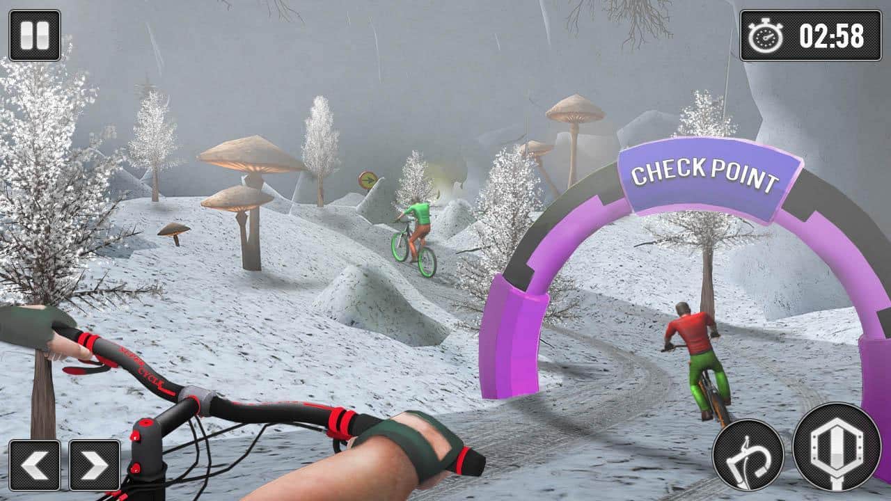 MTB Downhill Cycle Race – realistic bike racing, which takes place from the first person. In this game you take control of your mountain bike and drive through various mountain roads and passes. Try to go as fast as possible and avoid all obstacles on your way. Show all your skills of Cycling and constantly follow the signs, which will indicate the way forward. Pass the checkpoint and come to the finish line first receiving rewards and bonuses. Discover new bikes and unlock new levels.