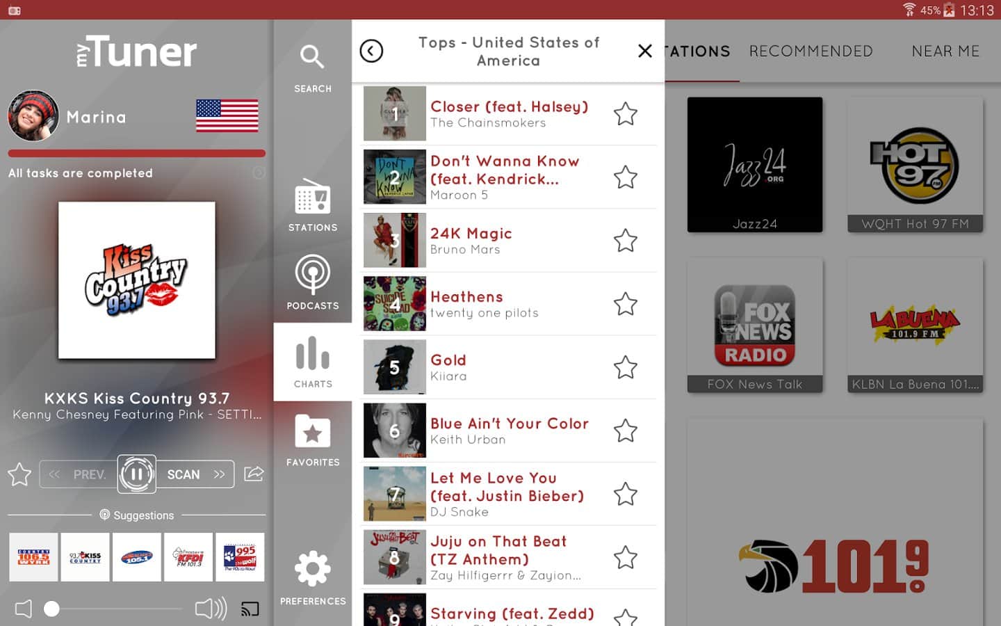 myTuner Radio Pro - a Great app for those who are in the way, or just likes to listen to the radio. It was recognized in more than 100 countries, and supports a huge range of radio stations. This way you will be able to choose any radio, be it even an ordinary local radio.