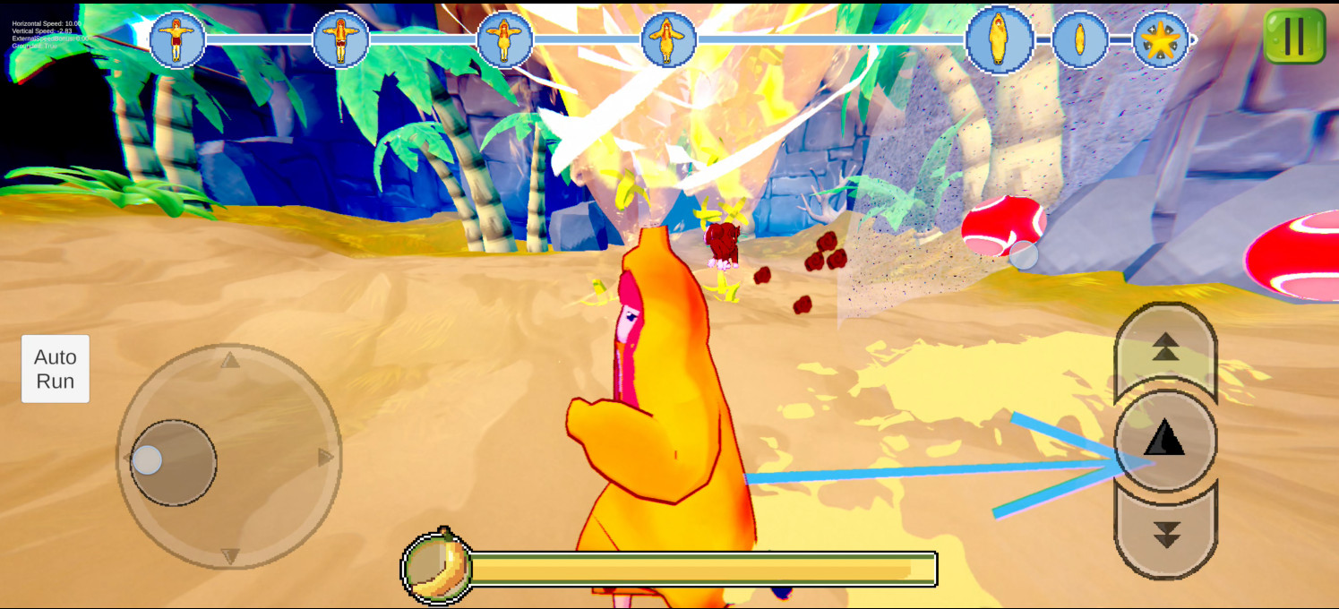Nana Into The Banana is a crazy, fast-paced challenge where chaos is painted in bright yellow. Dodge, dive, explode, and launch boomerangs as you carve your way through waves of enemies. Gain experience, search for the mysterious radio, and endure 15 seconds in its zone to initiate the evolution ritual. Every step is a risk, every mistake is a downfall. But with each attempt, you grow stronger, getting closer to the final form — the absolute state of Banana. Ready to ascend?