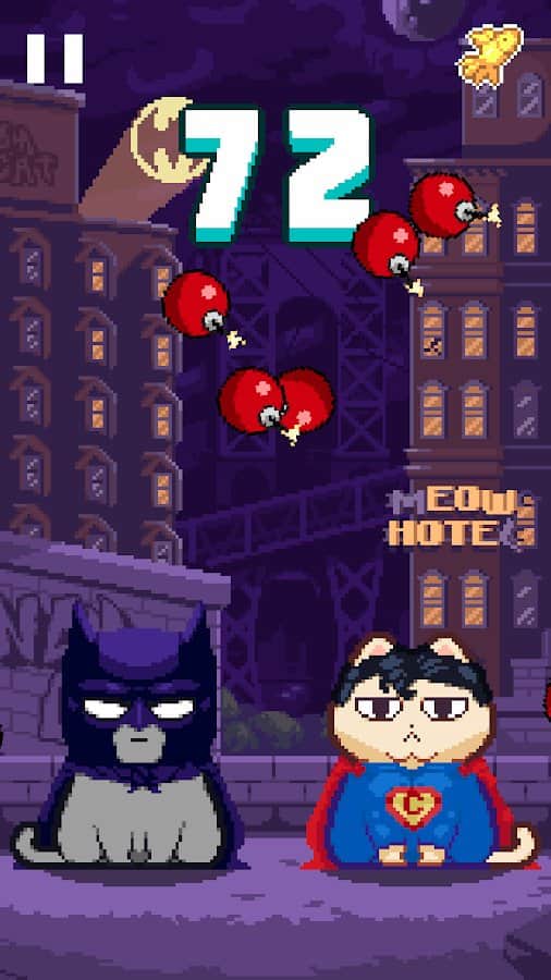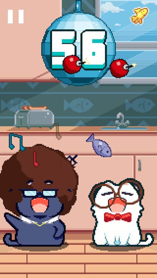 Nom cat is a bright and dynamic arcade game with elements of half-clicker, in which you will become a master of some seals. To your Pets were fed, and you have the highest rating, you need to tap on them to open their mouths. Their open faces, they catch endless streams of fish. Your greatest task is not to catch some kind of foreign object in the form of vegetables, fruits and bombs – seals that are not crazy love. The game is very easy to learn, but it is simple only at first glance. Train your dexterity and reaction speed to lead the top ranking and to be able to open such cats as Nyan Cat, Garfield and eternally grumpy cat.