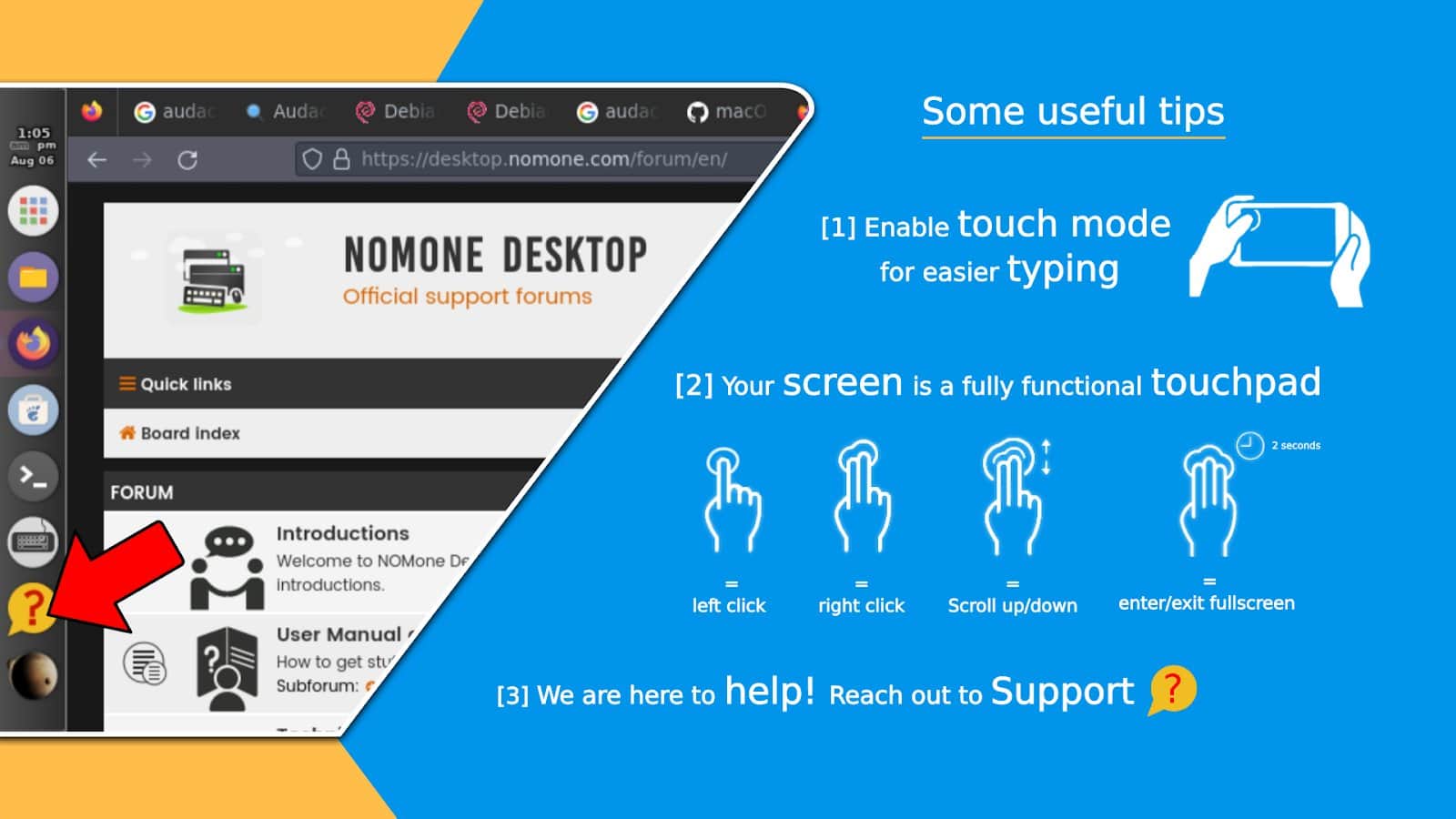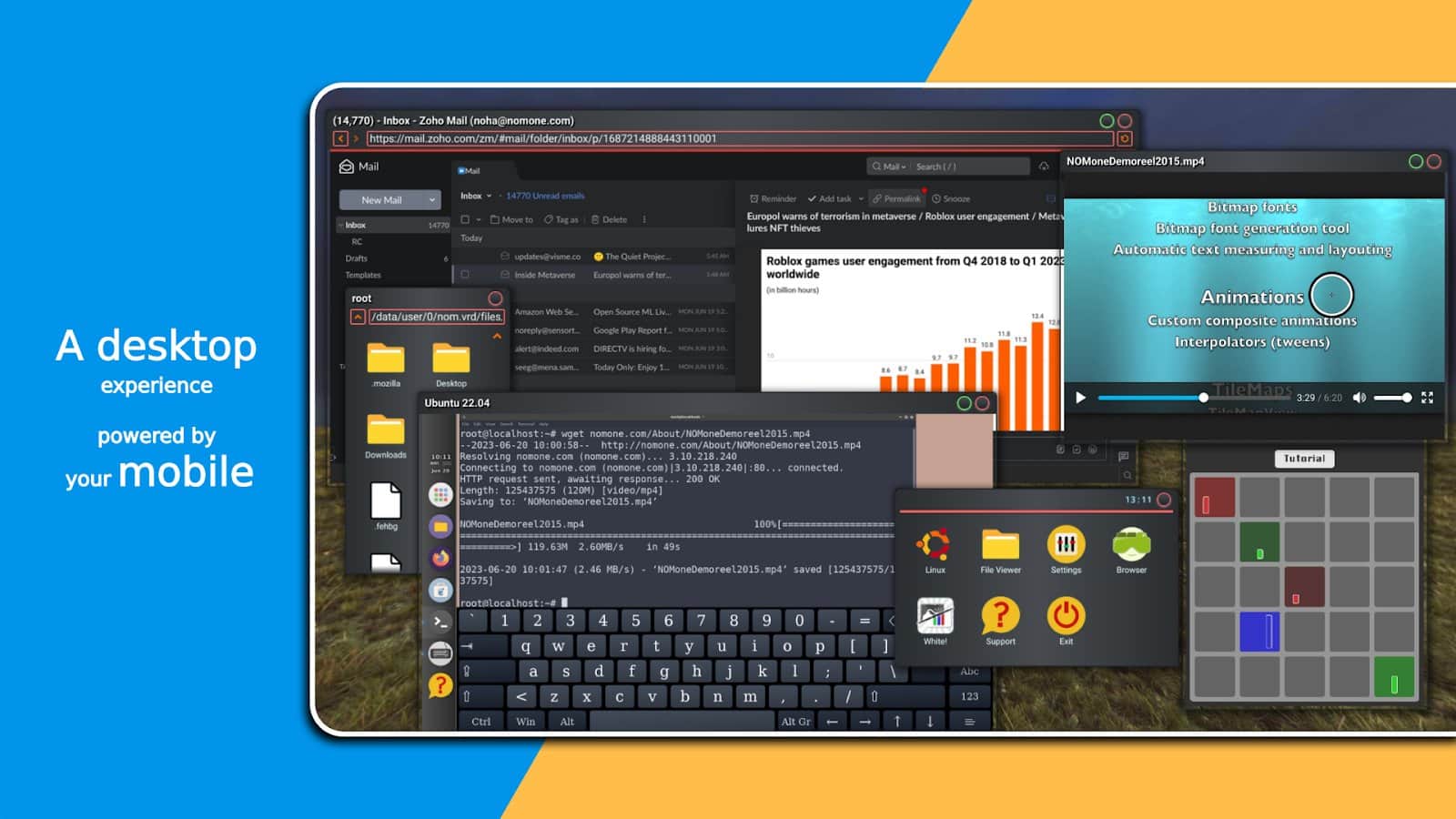 On the NOMone desktop on Android, you can change the resolution and scale of the Linux interface to ensure maximum comfort while working. Here's how to do it: