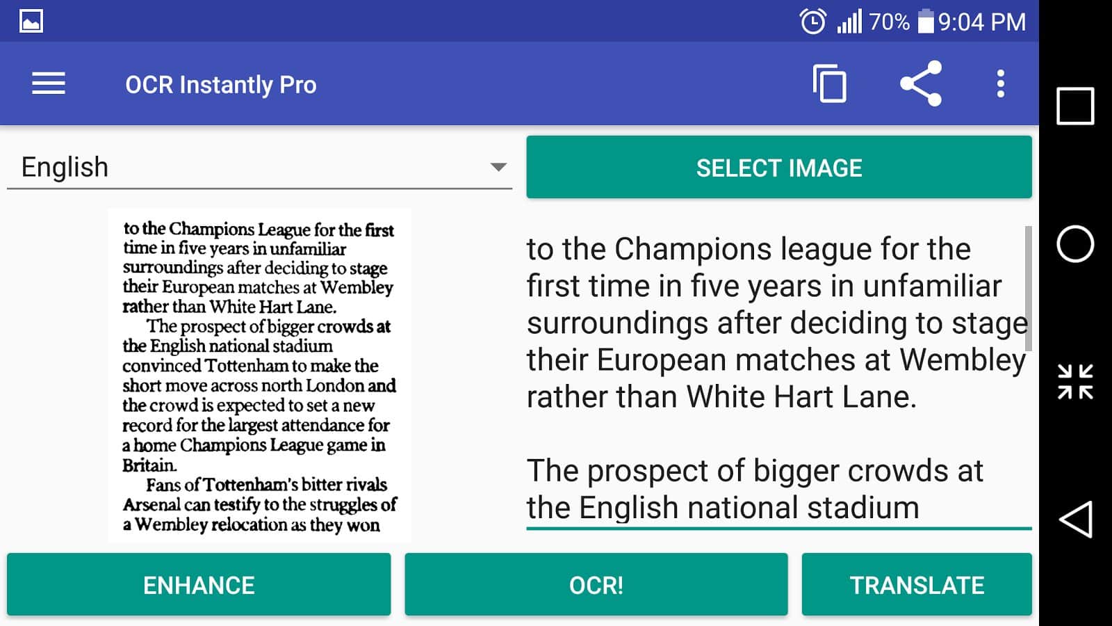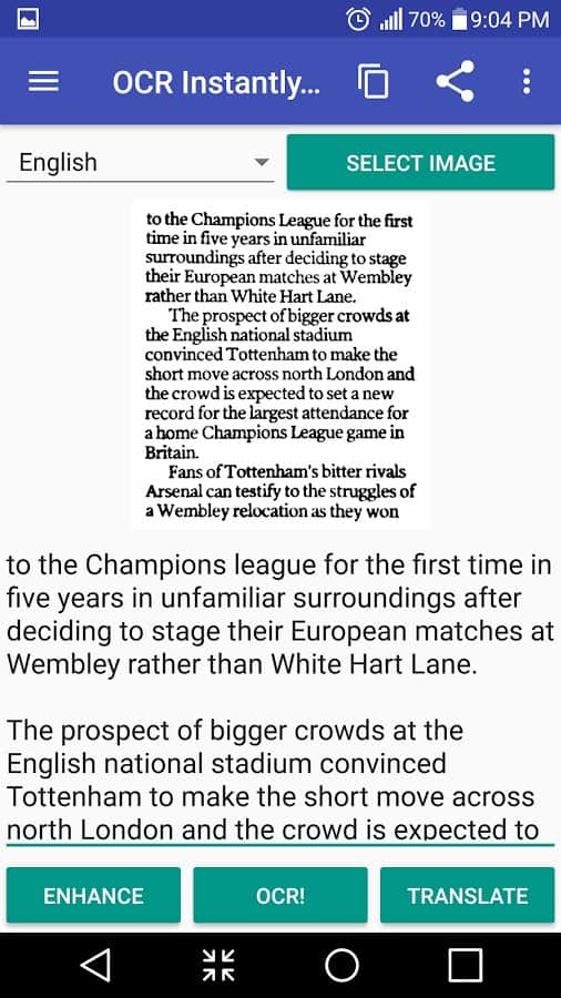 OCR Instantly boasts not only a high quality text recognition, but also ability to work offline, tools to improve the original image or a crop, if you got unwanted text.