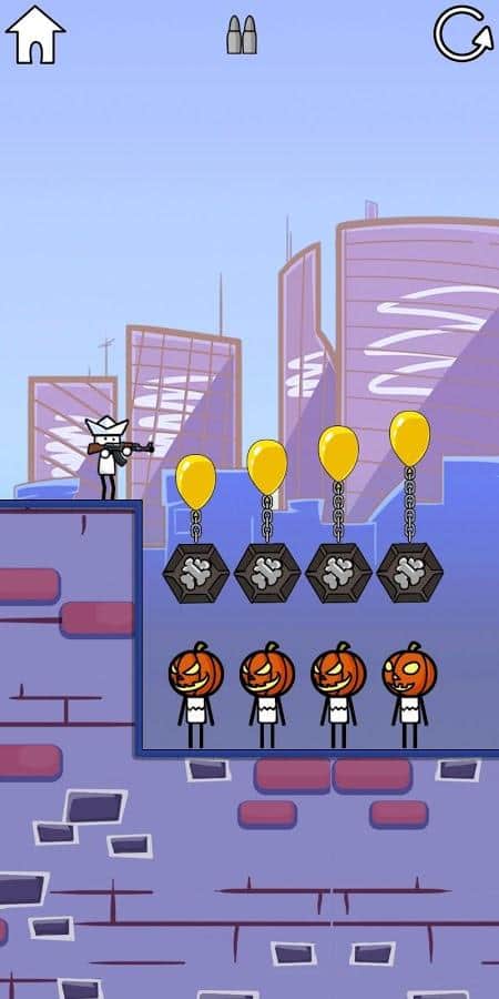 One Bullet is a colorful puzzle game for Android where you will gather the harvest for the feast of All Saints - Halluin. Take control of your arrow and go hunting hunting down and destroying pumpkins. Aim and shoot the pumpkins taking into account the trajectory and range of a bullet. Try to destroy all the pumpkins with one shot and earn rewards. Keep in mind that bullets can ricochet, Bouncing off walls and other objects. Go through more than 100 levels, hand-drawn and enjoy excellent graphics and realistic sound effects. Collect your harvest from the comical pumpkins and get ready for the holiday.