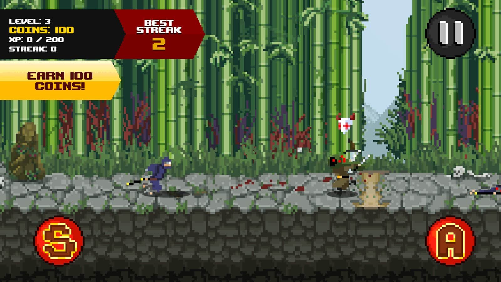 One Tap Duels - a game that is a mix of genres. At first glance One Tap Duels may seem just a normal horizontal runner, because you need to run in infinite world and try to overcome the maximum distance. However, the reality is not so simple, on the way you will come across various enemies blocking your path, each of which you have to fight. The developers have implemented a rather unusual battle system that will require you to not only reaction rate, but also an enviable eye. And so, before us is a dynamic runner with battles, development system and a mass of characters. As a graphic solution creators One Tap Duels used a nice retro style.