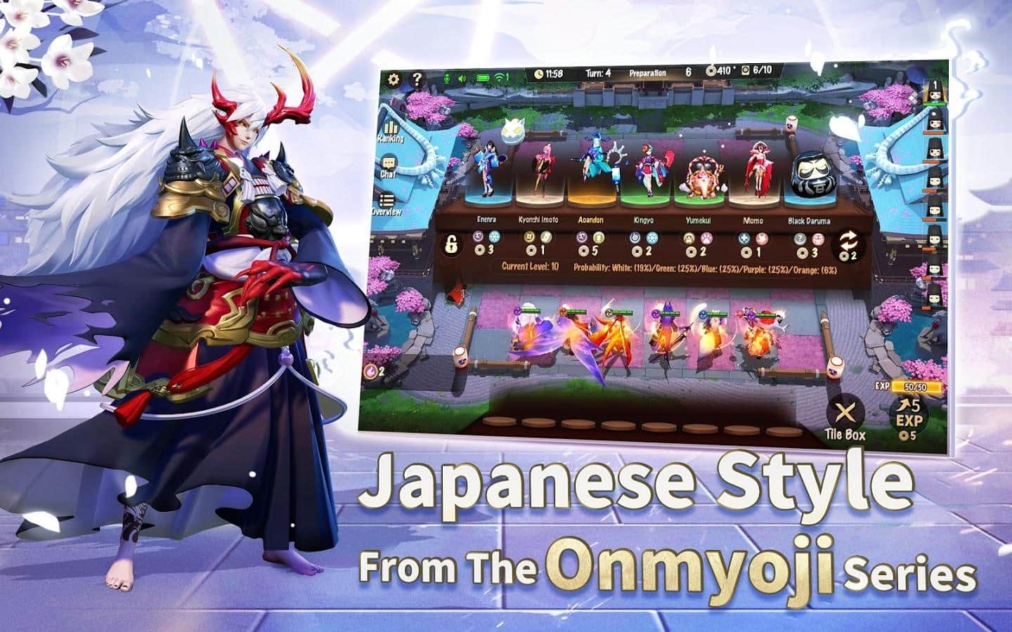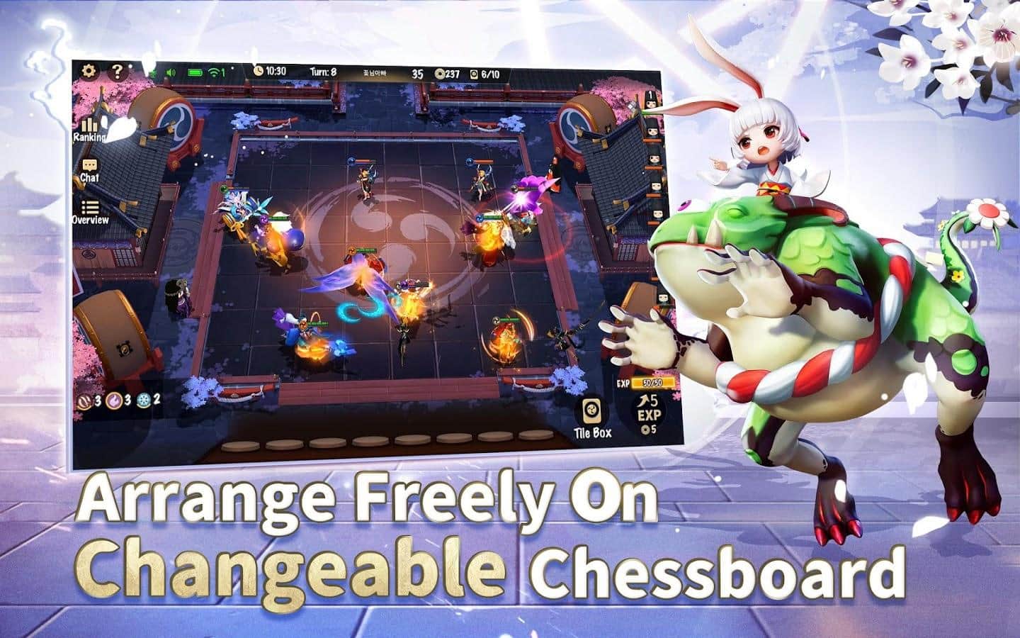 Onmyoji Chess - turn-based strategy game for Android based on the Onmyoji IP developed by NetEase Games. The game follows the beautiful Japanese art style of the famous series of Onmyoji and offers a variety of chess boards to choose from, while retaining the authentic style of the ancient Heian era. There are going to players from around the world to find out who will be the winner in this game of chess. In the game there are many chess boards and accessories, from romantic checkerboard Sakura to the beach a chess-Board on a summer theme and chess boards in the Japanese style. Combine them as you like to create your own chess Board. There are also a lot of cute mascots who encourage you to make your matches more interesting.