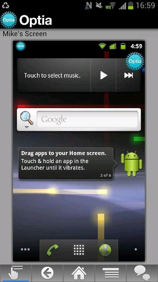 Optia – отличное приложение для андроид устройств с возможностью удаленного управления одним смартфоном с другого. Все очень просто, вы отсылаете запрос получателю, а он в свою очередь его подтвердив, начнет сеанс управления. Пользователь получит доступ ко всем функциям устройства, в том числе к кнопкам "домой", "назад", "меню" и прочие. Приятного управления!