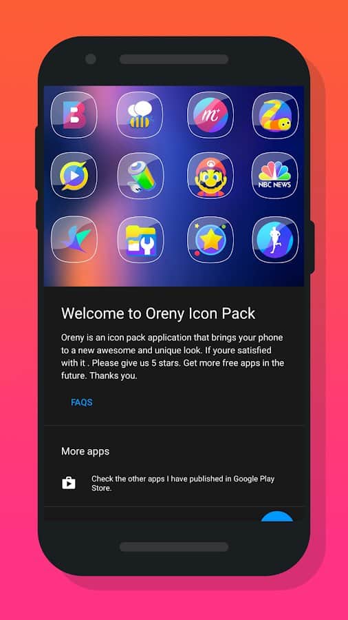 the bright and beautiful Package of icons Oreny - Icon Pack transforms the desktop of the device beyond recognition. It diversifies the boring collection of standard icons and will make use of a smart phone with an even greater desire.
