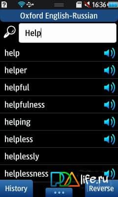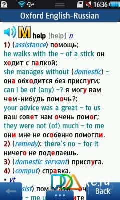 Oxford English dictionary - Russian-English dictionary for bada, a good helper not only in translation but also in language learning. IT contains over 185,000 words and phrases and 290,000 translations. In particular, dialects (Russian, British and American), modern idioms, colloquial speech, etc. the Dictionary includes most of the abbreviations and acronyms, grammar reference and transcription. There is also a table of irregular verbs. Additional features of the application can note transcription of words; morphology module, which allows you to look up words in any grammatical form; search history - quick access to the 20 most recent transfers, a list of previously viewed articles and special tests on the cards for learning new words and control success. Sound module contains about 50 000 words, recorded in high quality professional speakers. Possible to install programs to the memory card.
