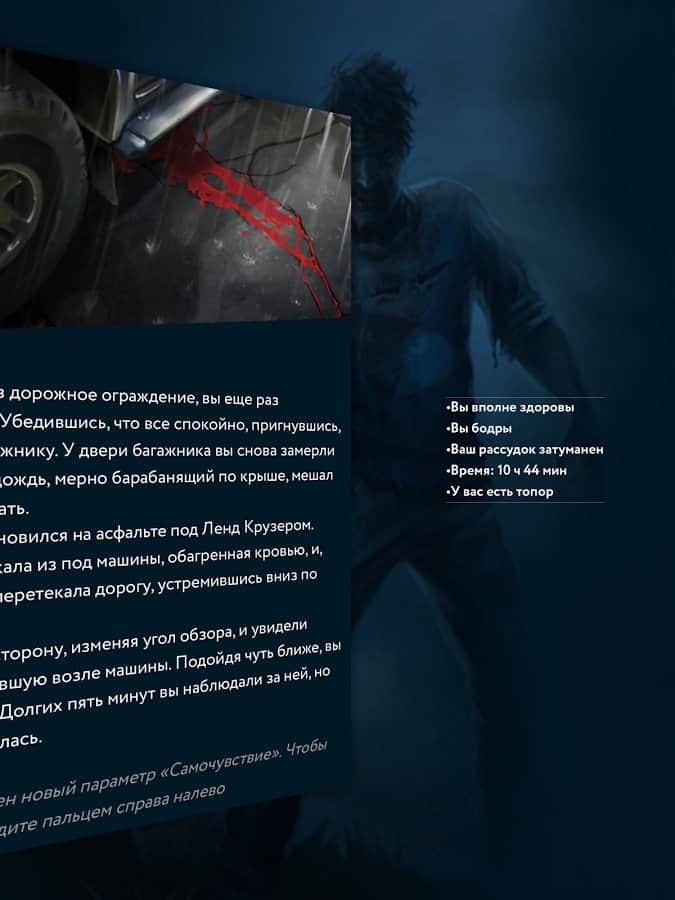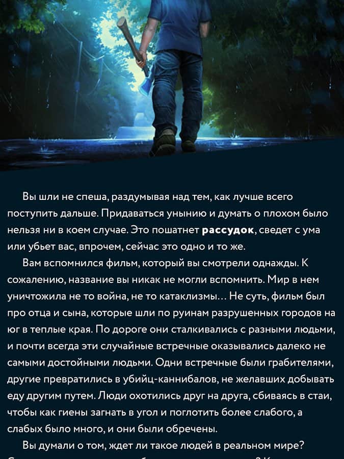 Pandemic: the Road home Quest - a Great text adventure in which you have to play the role of one of the survivors. After the world has experienced a pandemic, most people turned into mindless mutants you managed to be one of those who have the brains for it. As, you found yourself quite a nice house on the outskirts of town and lived a peaceful life until one fine morning I heard the sounds of most of these mutants. Here comes into action and the player, and then the story will develop only from your actions. Fight for the life, perform certain actions and survive at any cost!