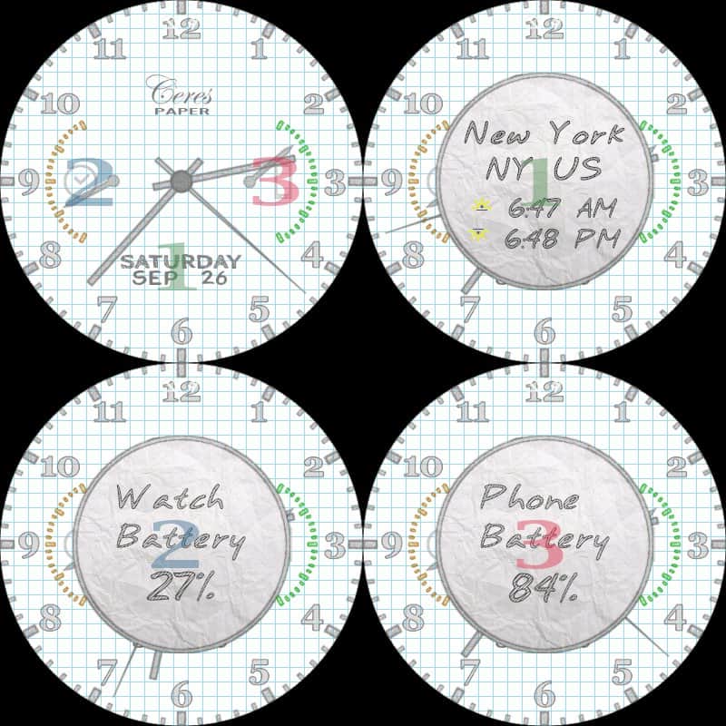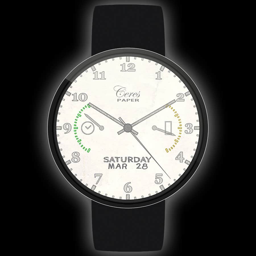 Dials for smart watches, there are many: from simple to fancy chronometers. But the most interesting are always those that have some interesting feature, highlight. Here, for example Paper Watch stand non-standard paper substrate, and the type of paper I'll be able to choose from several given options, and all useful information would look like painted. Speaking of information other than the current time, the screen displays date, day of week and the battery level of your smartphone and.