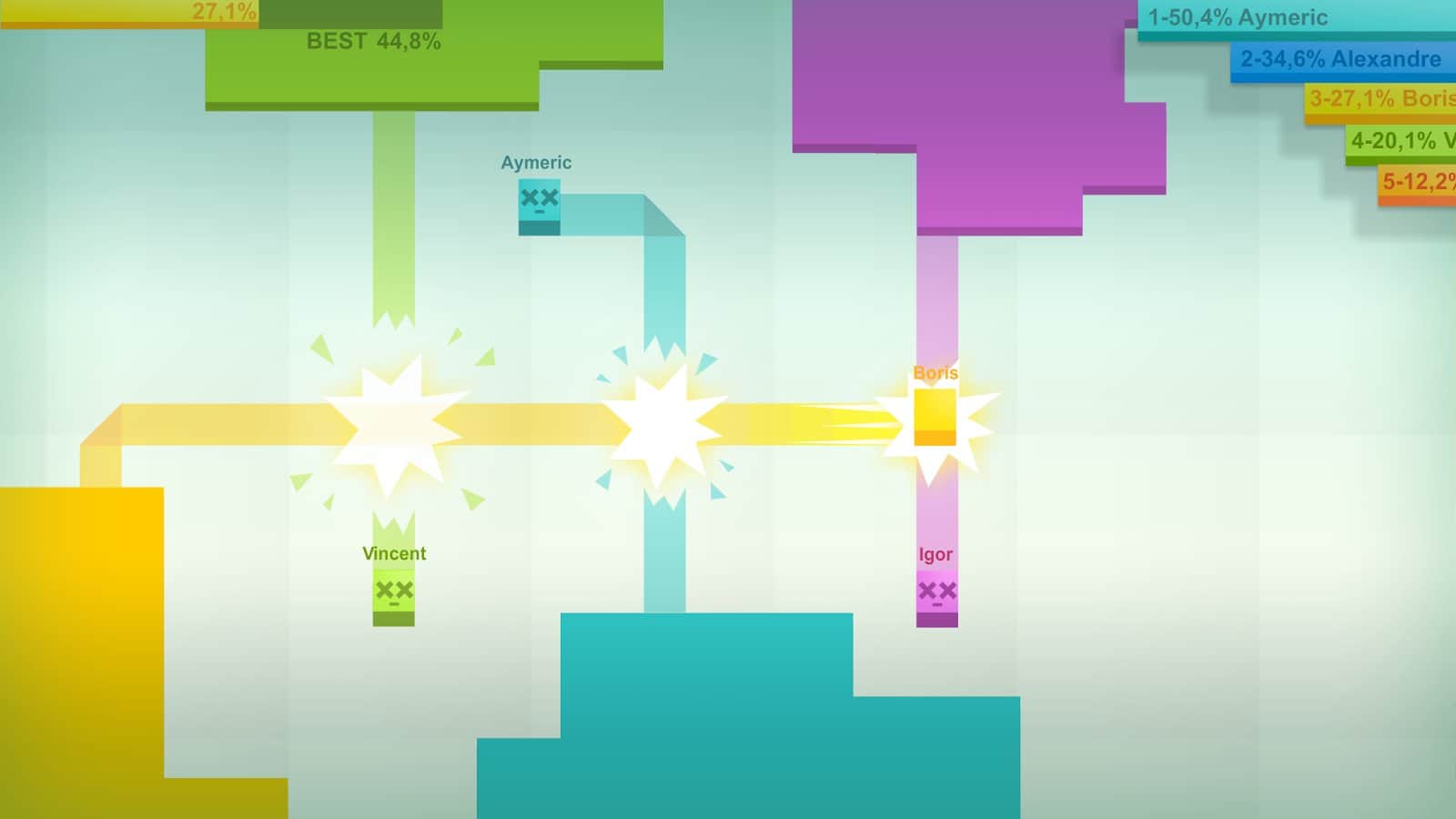 Paper.io - Another fun game from the Io. This time we are asked to play for a small paper square, whose task will be to chop off the largest possible piece of territory. Make it pretty easy, all you need is to trace certain parts, and cut them from your enemies. However, be careful if someone will cut your way, you in the same hour will die. And although the game looks quite simple, it is very difficult to survive, because a lot of players, and everyone wants to chop off a piece.