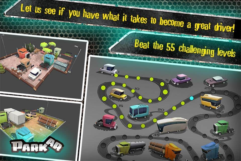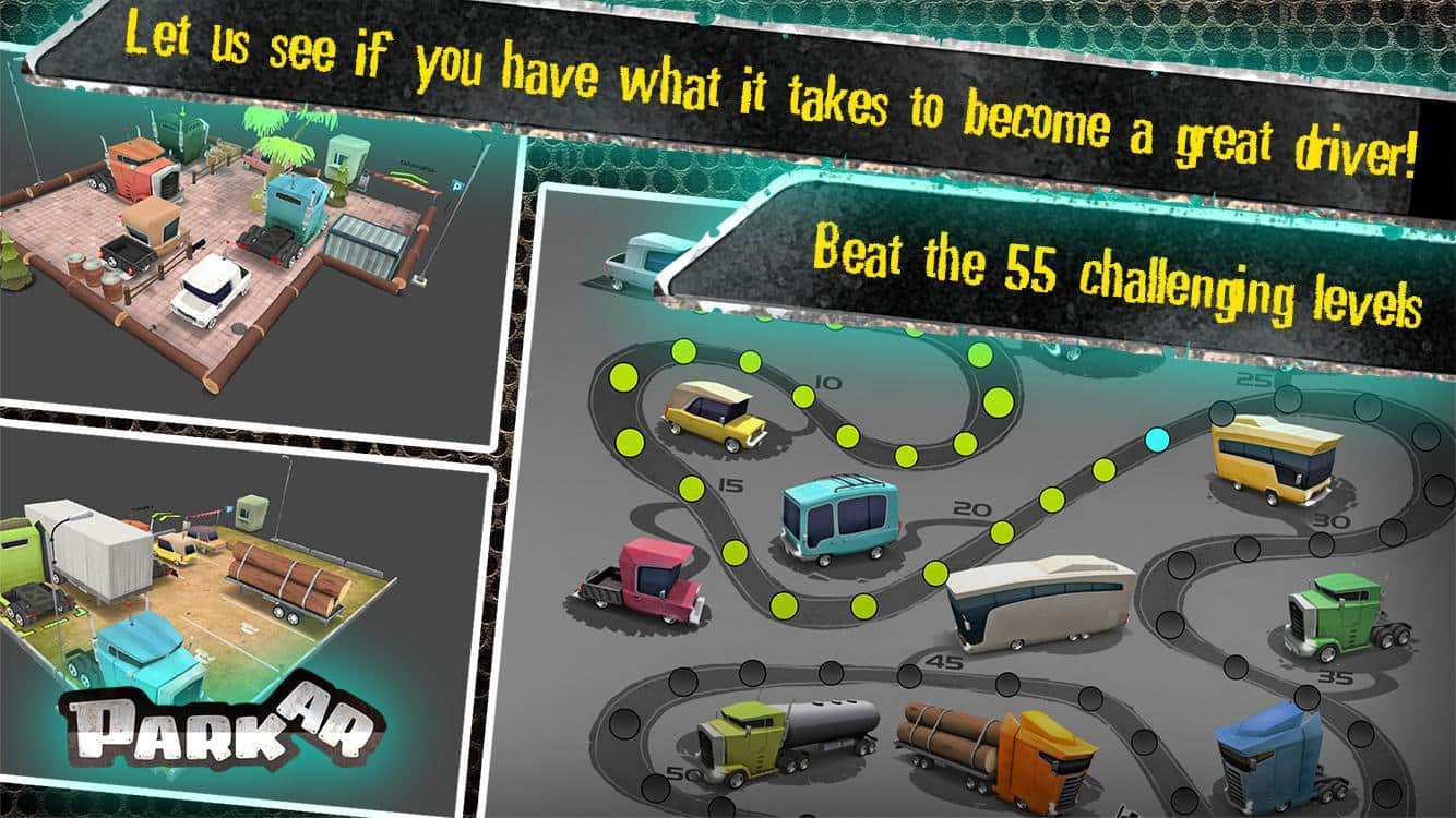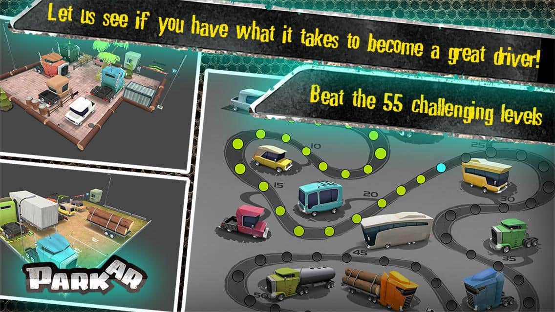 Park AR - Parking Game - a game in which you need to learn how to Park. You expect more than 50 exciting levels in which you show all your skill and ability “feel» your car. At your disposal are various cars, trucks, buses, carriers of logs, and many others. At each level you need to adjust the car to the desired meta, you just need to correctly Park, circling all the obstacles in its path.