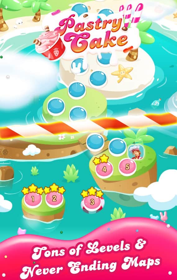 Pastry Cake - Candy Match 3 – a game genre of three in a row in which you enter the land of sweets. Make cakes, cupcakes, cookies, cakes and other sweets in rows and show in practice how good you are a pastry chef. Show all your culinary talents and make possible long rows of sweets, while blasting them. Sort between sweet and have great bonuses and a large number of points for the maximum length of the chain. Start a chain reaction and get three stars on each level to open the next one. The game will delight you with colorful and diverse worlds, numerous sweets and a leaderboard where you can display your results.