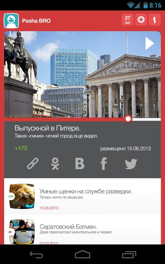 PeretzCAM – a great app for Android that works simply and quickly, by shooting video and downloading it with one touch. It is possible to control all processes right from your smartphone: add a video from the library, edit the profile inside the app, the ability to share with friends on social networks, tracking of popularity of commercials in the dashboard, and much more. Enjoy!