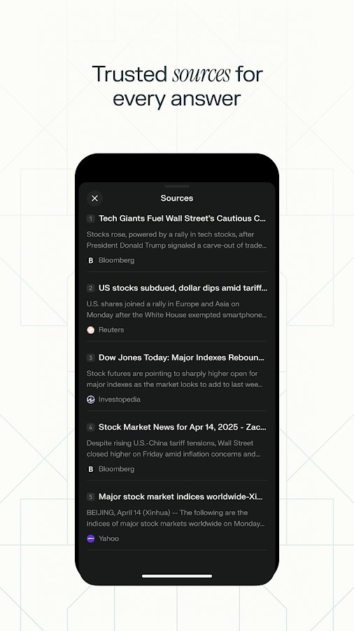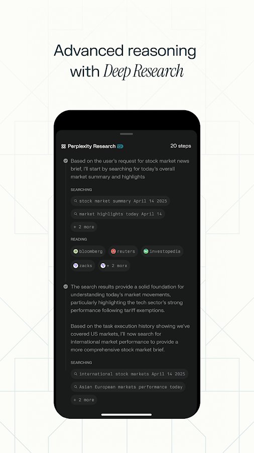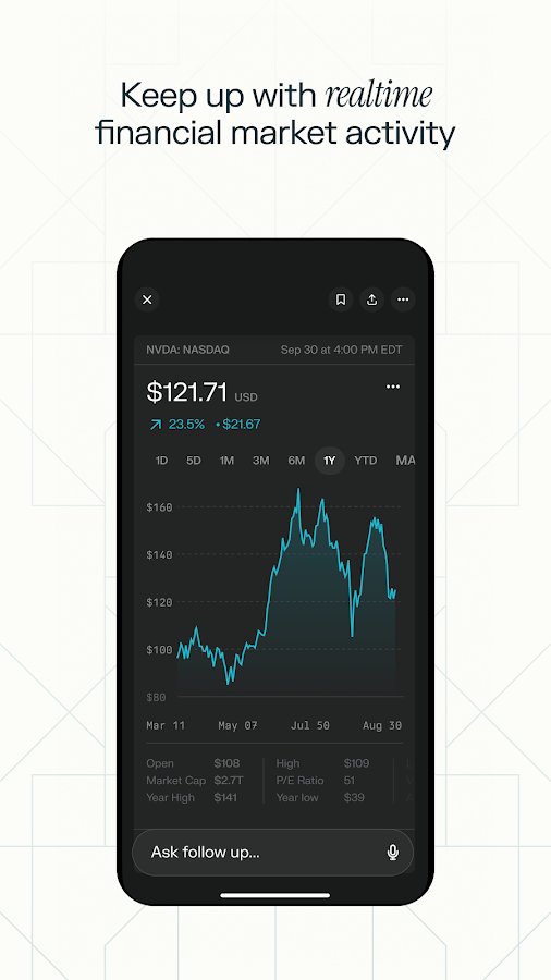 Perplexity is a free tool that will help you get reliable and timely answers to your questions. It harnesses the power of artificial intelligence from giants like OpenAI and Anthropic, and syncs across different devices. The app offers a "Second Pilot" AI-driven feature to help you find more information on a topic of interest. You can ask questions using text or voice and receive instant answers. The "Continuation of the Topic" feature allows you to continue the discussion for a deeper exploration of the question.