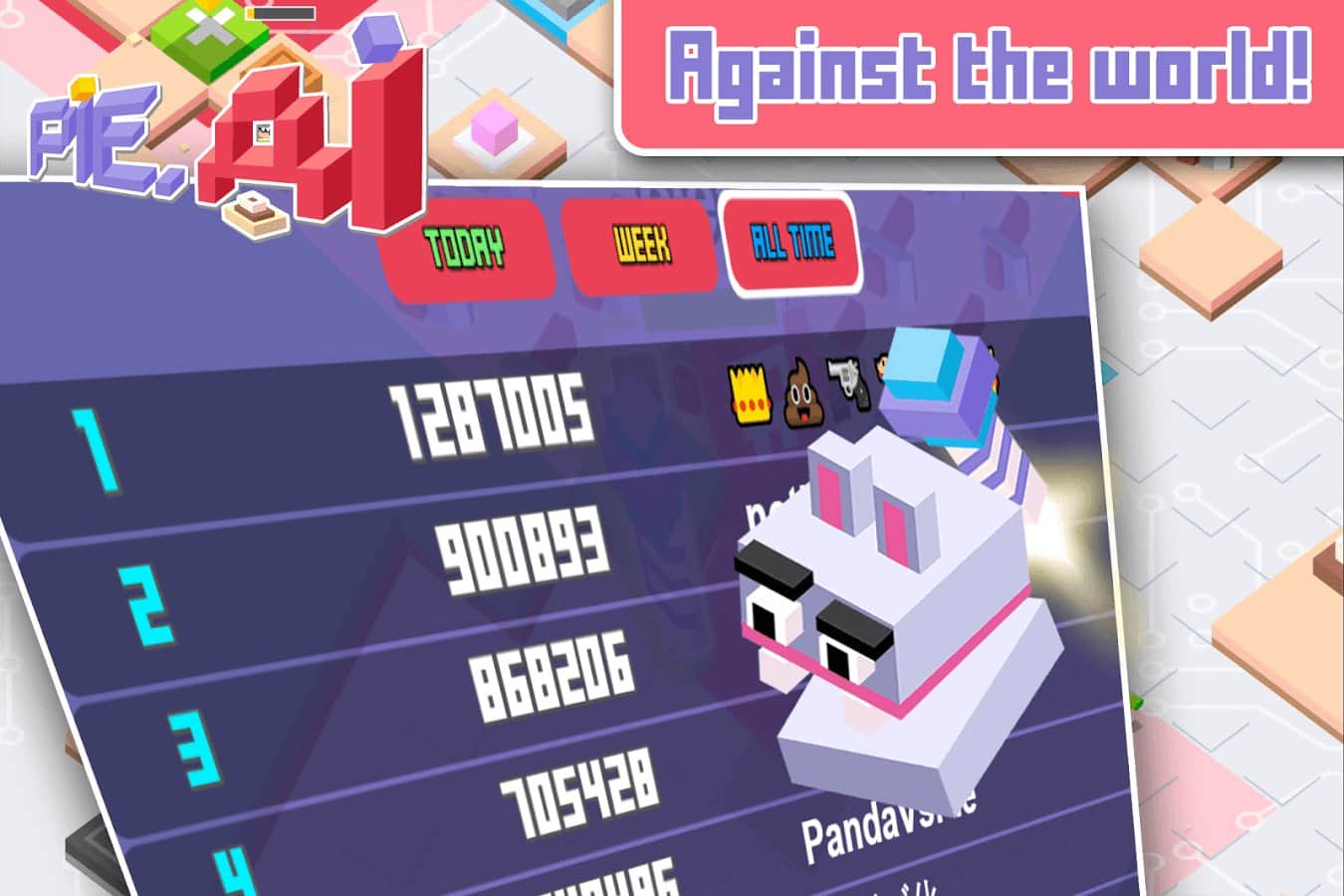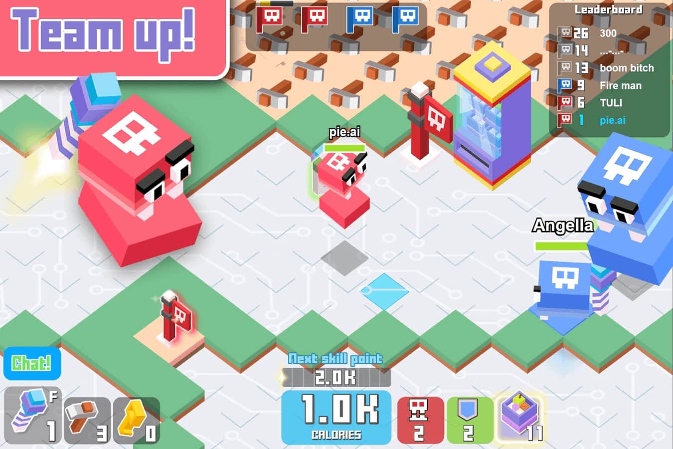 pie.ai – a game on Android where you find yourself in a blocky world, where you will manage a fun character. With a single touch of a finger to the screen to move your hero levels and eat cakes and pastries. The more you eat sweets, the stronger you will become and will be able to overcome even the biggest enemies. Roam across a vast world and fight enemies, standing in your way and avoid the drones that throw bombs. Attack weak enemies and strong try to escape. Collect enough points and compete with other players for best results.
