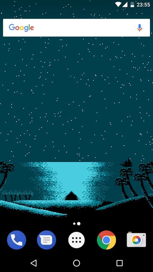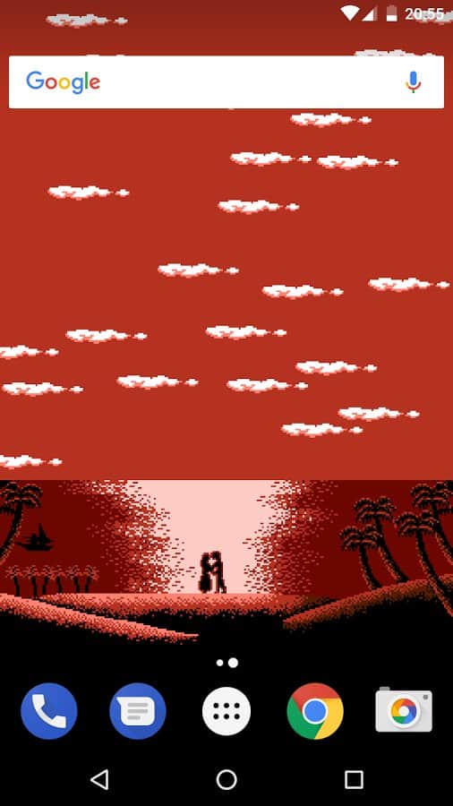 Pixel Beach Live Wallpaper – live Wallpaper on Android, with graphics in the style of the splash screen. This Wallpaper will display on your screen phones or tablets of different pictures that will depend on the time of day. The pictures will depict a tropical island with a couple of lovers who spend here their honeymoon. Observe everything happening on the screen with settings, add clouds, stars and birds. This Wallpaper does not take up much space in memory and will delight you with a complete lack of advertising. In total, these Wallpapers are 14 different scenes that do not let you get bored.