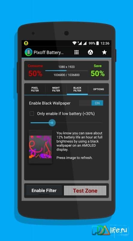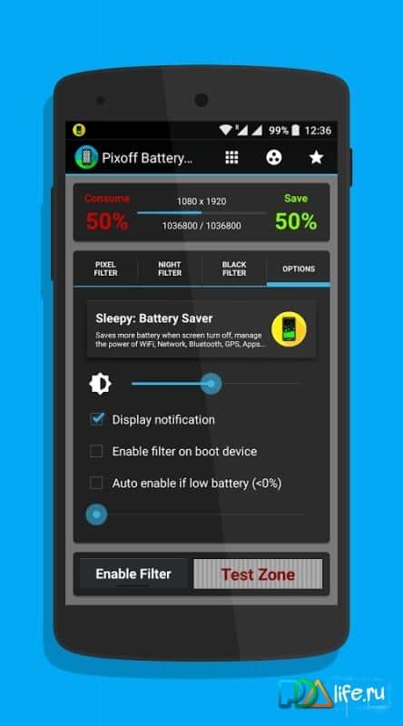 Pixoff: Battery Saver PRO is Too quickly consumed the battery in a smartphone? Then just install this application and reduce its costs by optimising your processes. In this app you will find simply a lot of settings in order to optimize your smartphone, and to check the efficiency of the screen.