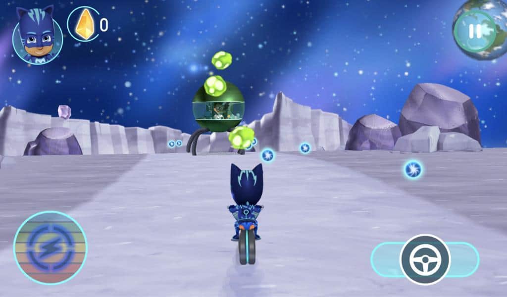 PJ Masks: Halloween – racing on Android where you will drive on the moon. Choose a racer from the proposed characters such as Catboat, Alert and Gecko. Night of the wicked moon girl and Romeo decided to get all the moon crystals to increase their power. You have to stop them, go on a journey and operate a Rover driving on the moon. Beware of the numerous obstacles and dangers await you at every turn and collect as many crystals as possible.