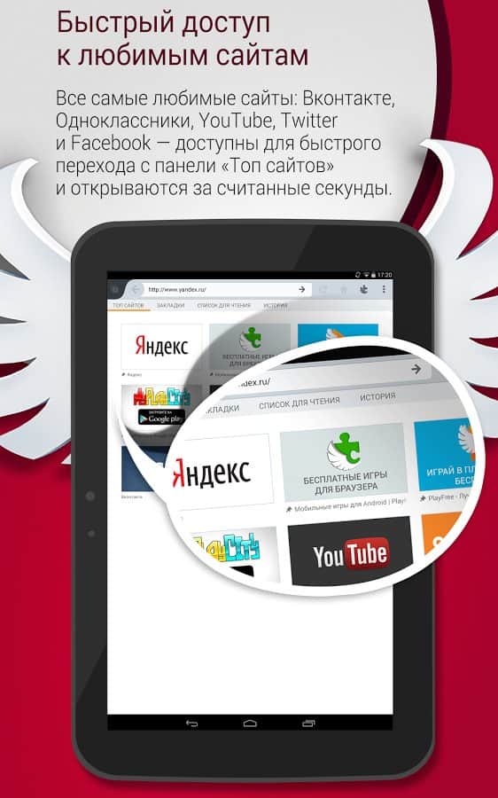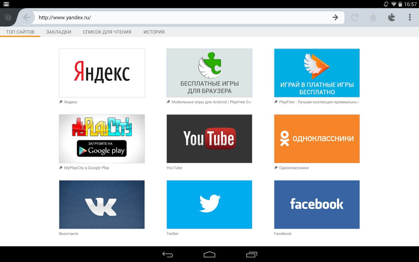All favorite sites: Vkontakte, Odnoklassniki, YouTube, Twitter and Facebook