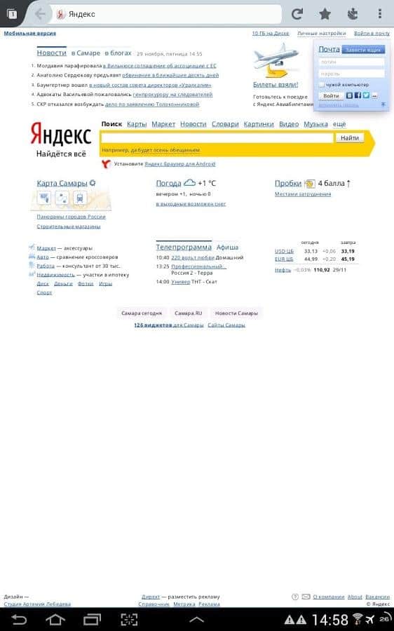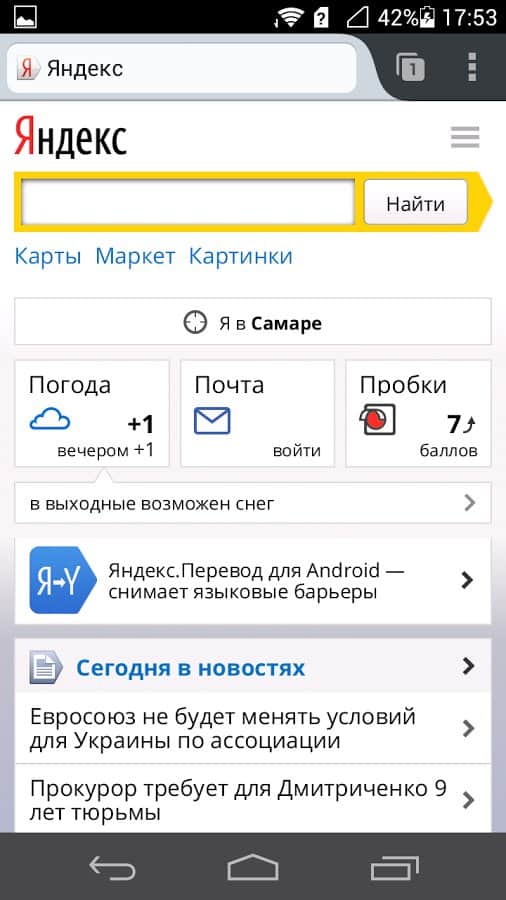 Built-in search system Yandex