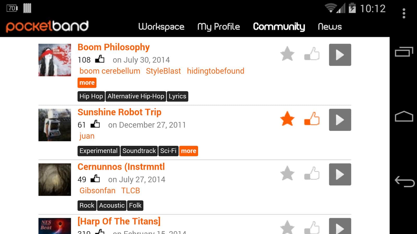 PocketBand Pro - Social DAW - a Unique application where you will be able to create their own music. It's very simple, you can add any music, even recorded, and then edit it to your liking. But the most interesting thing here is that you can go to your account and share records with your friends. They will be able to modify them, adding different instruments. Thus you can record a song, with many different instruments being in different parts of the world. The idea is very cool, and the number of tools and settings is added with each new update.