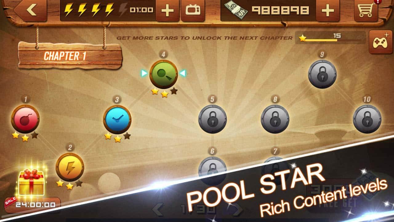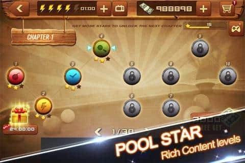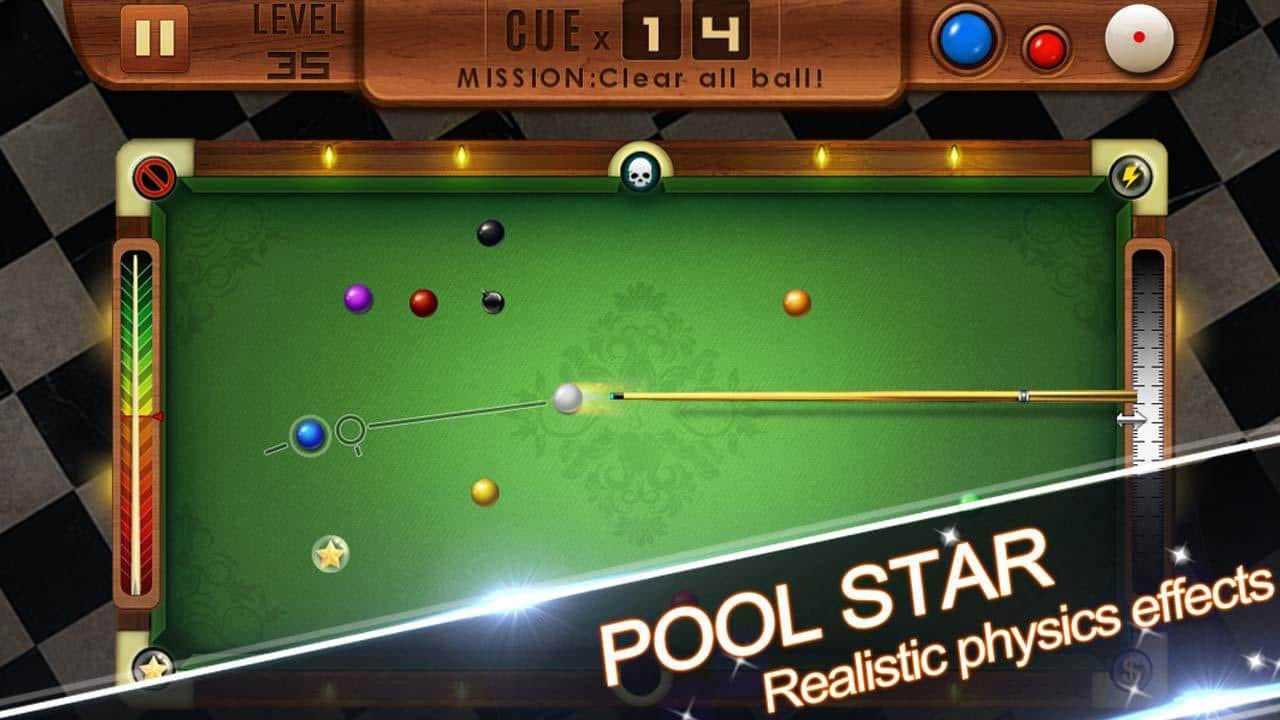 Pool Star – станьте самым лучшим игроком в бильярд в этой игре на андроид. Играйте в своем телефоне и повышайте свои умения забивая все шары в лузы и тем самым не оставляя не единого шанса соперникам выиграть матч. Благодаря сенсорному экрану регулируйте силу и направление удара, чтобы с точностью попасть по шару и закатить его в лузу. Игра порадует вас отличной физикой, где шары могут отстукивать от стенок и других шаров, используйте это и совершайте невероятные удары, разрабатывая целую схему у себя в голове. Откройте для себя более 300 уровней, которые преподнесут вам новые испытания с невероятной сложностью.