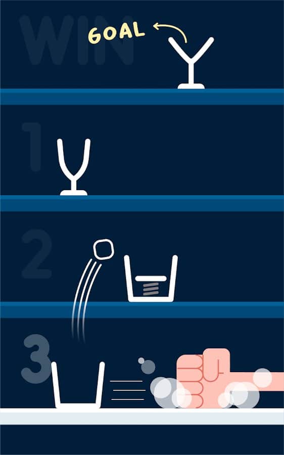 Pop The Ice – a game on Android where you will deliver ice cubes in glasses of cocktails. Tap at the right moment the screen of your phone or tablet and thus you will hit the table with his fist, sending ice cube in another beaker, which is at the next level. Do repetitive actions until the ice cube reaches destination point. Train your great reaction and speed of fingers and keep in mind the time that the glasses on the platforms can move with different speed. Throw the cube from the side of the glass and avoid dropping the ice cube on the table. Discover new locations with different cocktails.