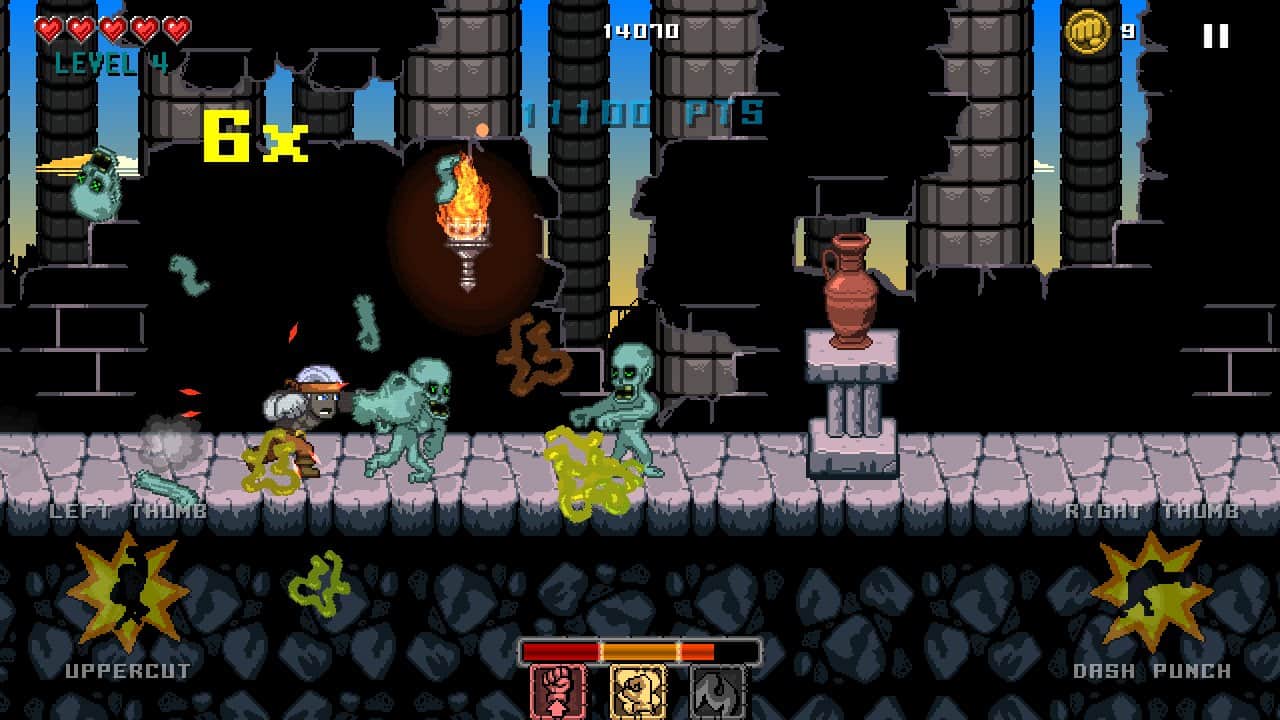 Punch Quest is a runner game for Android with graphics 16-bit games. Despite the simplicity of the image, the game attracts and has many fans. Control of the game is simple and so you have to enjoy the gameplay in full! Start the fight against evil - a sinister move forward through the dungeon and destroy all enemies on your way using punches, combos and special moves, such as throwing one enemy into others! In addition, will be pleased with the many open inventory, different ability, customization and more! Quests will grant you unusual dinosaur that can shoot laser out of his mouth.