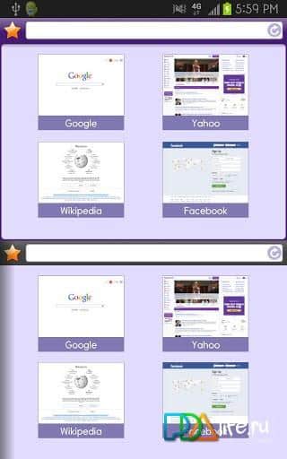 Purple Dual Browser – an interesting proposal from the developers AppBora to create a new double browser for your Android tablet or smartphone. You will have the opportunity to be simultaneously on two different sites to communicate in your favorite social networks and simultaneously to seek the necessary information from the bins of the Internet. Simple and intuitive interface, a large number of features and capabilities make Purple Dual Browser necessary in everyday life for surfers in innet.