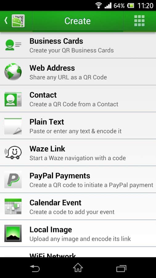 Create a code from a contact or bookmark and your friend will be able to scan it to their device-no typing keyboarding!
