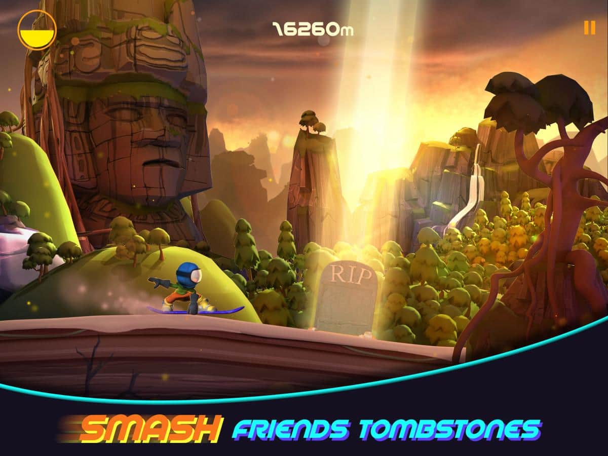 RAD Boarding – апокалиптический экшен в котором вы будете спускаться с высокой горы на сноуборде. Это захватывающая игра, в которой вам предстоит обогнать смерть, идущую за вами по пятам. Началось извержение вулкана и раскаленная лава потекла по склону горы уничтожая все на своем пути, скатывайтесь как можно быстрее с горы при этом, не забывая проделывать опасные трюки за которые получите дополнительные бонусы. Пройдите через различные миры с лугами, пустынями, джунглями и достигните точки назначения края земли с ледниками. По пути сражайтесь с крошечными медведями и собирайте лягушек для получения дополнительных бонусов и возможность заработать интересные костюмы.