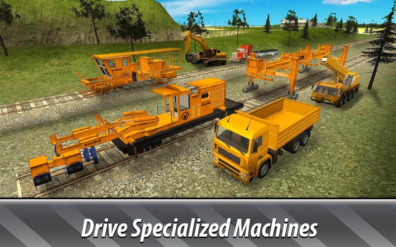 Railroad Building Simulator - build railroads! simulator on Android where you will play the role of Manager, which monitors the construction of the railway. In this game your task will be to build a railway from scratch, and to perform all the necessary missions. Follow all work phases and start with clearing the site for further construction. Operate modern equipment, ranging from dump trucks, cranes and bulldozers and ending of the welding carriage and reisolation. Move the two sections of road construction and carry out all tasks within the specified period. The game will please you with a huge fleet, the two parts of the construction, with numerous tasks and good graphics.