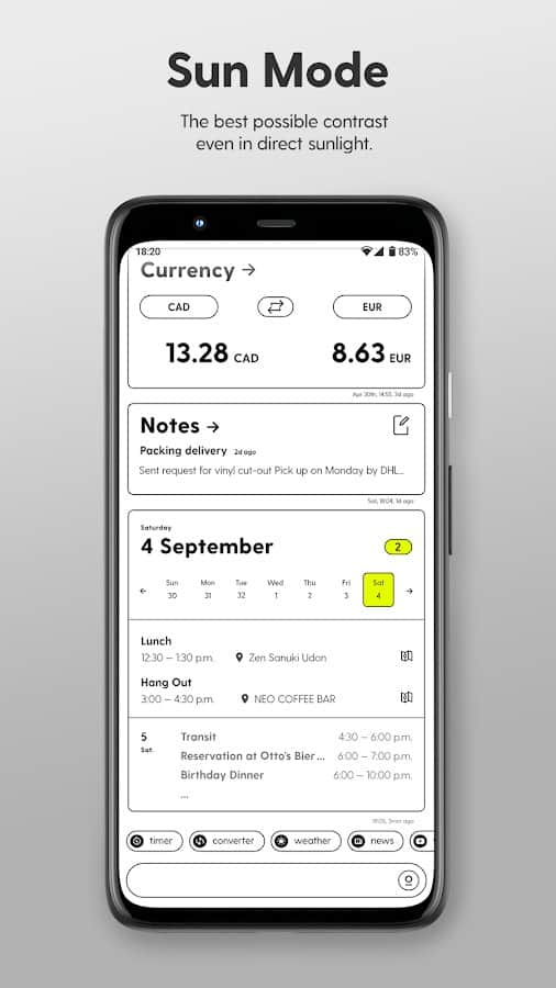 With launcher Ratio you will easily be able e to run, to supervise the work and manage programs on your device. Simple and functional settings allow you to optimize the system of your smartphone, desktop, messaging, probative daily use. Organize apps in days for quick access, use the mode "boxes", create personal cards (Calendar, currency Converter, Weather, Notes, news, etc.). All the messengers gathered in a separate folder, open each of them occurs in a single click. Join important conversations and messages in one place, add titles and themes, to change control modes with one touch. The application is completely safe and all personal data is under reliable protection.