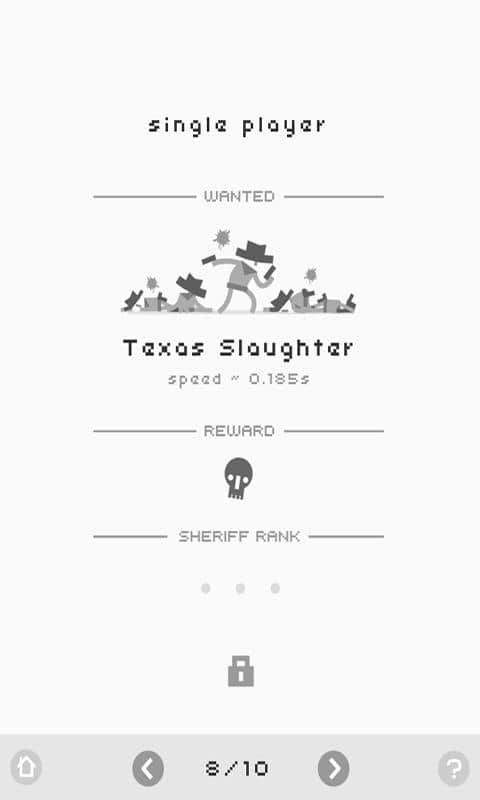 Ready Steady Bang – игра на андроид, в которой вы попадёте на Дикий Запад и там будете участвовать в дуэлях, против самых отпетых преступников. Играйте лицом к лицу со своими друзьями на одном устройстве и держите постоянно палец на курке. По ходу игры разблокируйте более 31 уникальных ковбоев и докажите всем что вы самый лучший стрелок. Выступайте против 10 самых известных бандитов в городе, и попробуйте обхитрить их, выстрелив как можно быстрее уничтожая одного за другим врагов. Эта веселая игра, которая будет тренировать вашу меткость и скорость реакции.