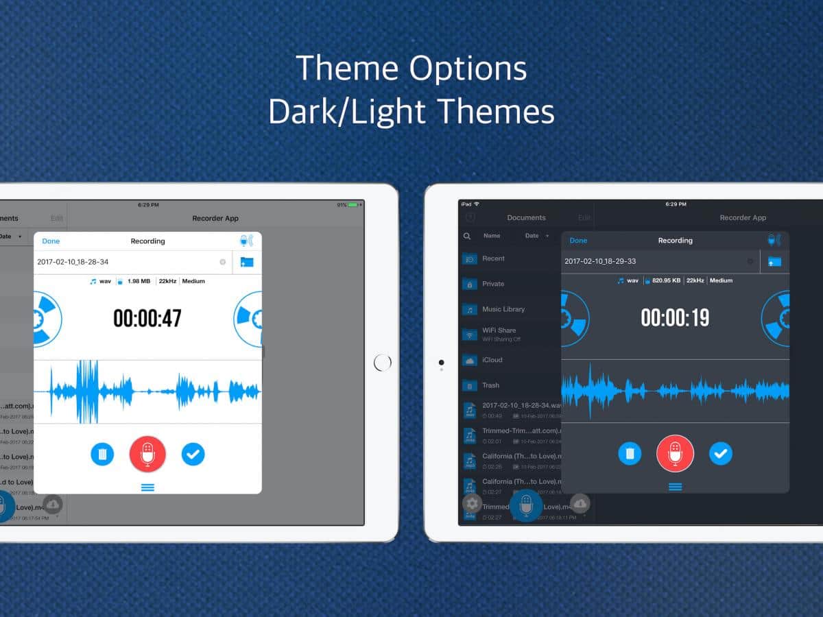 Recorder App Pro - Audio Recording and Cloud Share Is a simple application with which you can not only record audio and share it with your friends. Record any audio you need and then you will be able to handle it, to convert or to fill in for one of the most popular cloud storages. Beautiful interface and the ability to change the theme as well will be a nice addition to this app.