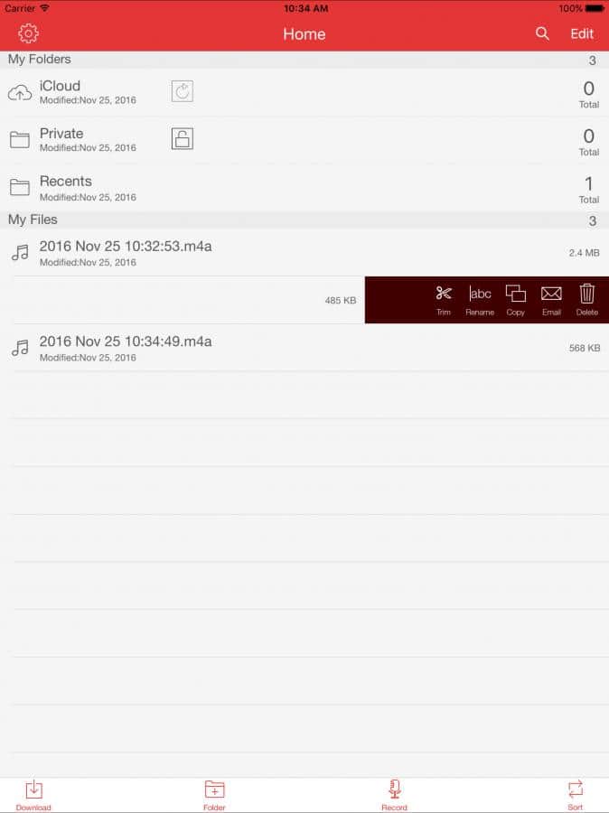 Sometimes a quality recorder just need to make a quick voice note, quietly Napping in the lecture, recording the speech of the teacher, to remember any music... options of using a weight, simply connect the imagination. How about a great quality recording? A built-in file Manager included? All this is in the app simply called Recorder Pro. It has no limitations on recording time and needs no Internet connection. As a voice recorder it allows you to adjust the sound quality select the format, syncs with iCloud, Dropbox, Box, and, importantly, works in background. Built-in file Manager working with folders (including nested and hidden), understands simple functions like copy/cut/paste/delete, archives the data and sends them via e-mail.