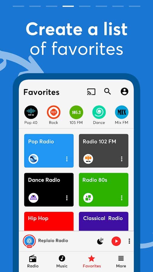 Replaio: Radio FM &Music Live - More than 50,000 different radio stations from all over the world are gathered in one place, and anyone who wants to listen to music in foreign languages can open any of the radio stations and enjoy the sound of songs in certain styles! In the application, you have the opportunity to set reminders about the start of selected programs, a sleep timer, an alarm clock with automatic repetition after a specific period of time and, of course, an equalizer with self-control. Make a whole list of your favorite songs and constantly listen to the radio stations that you like the most.