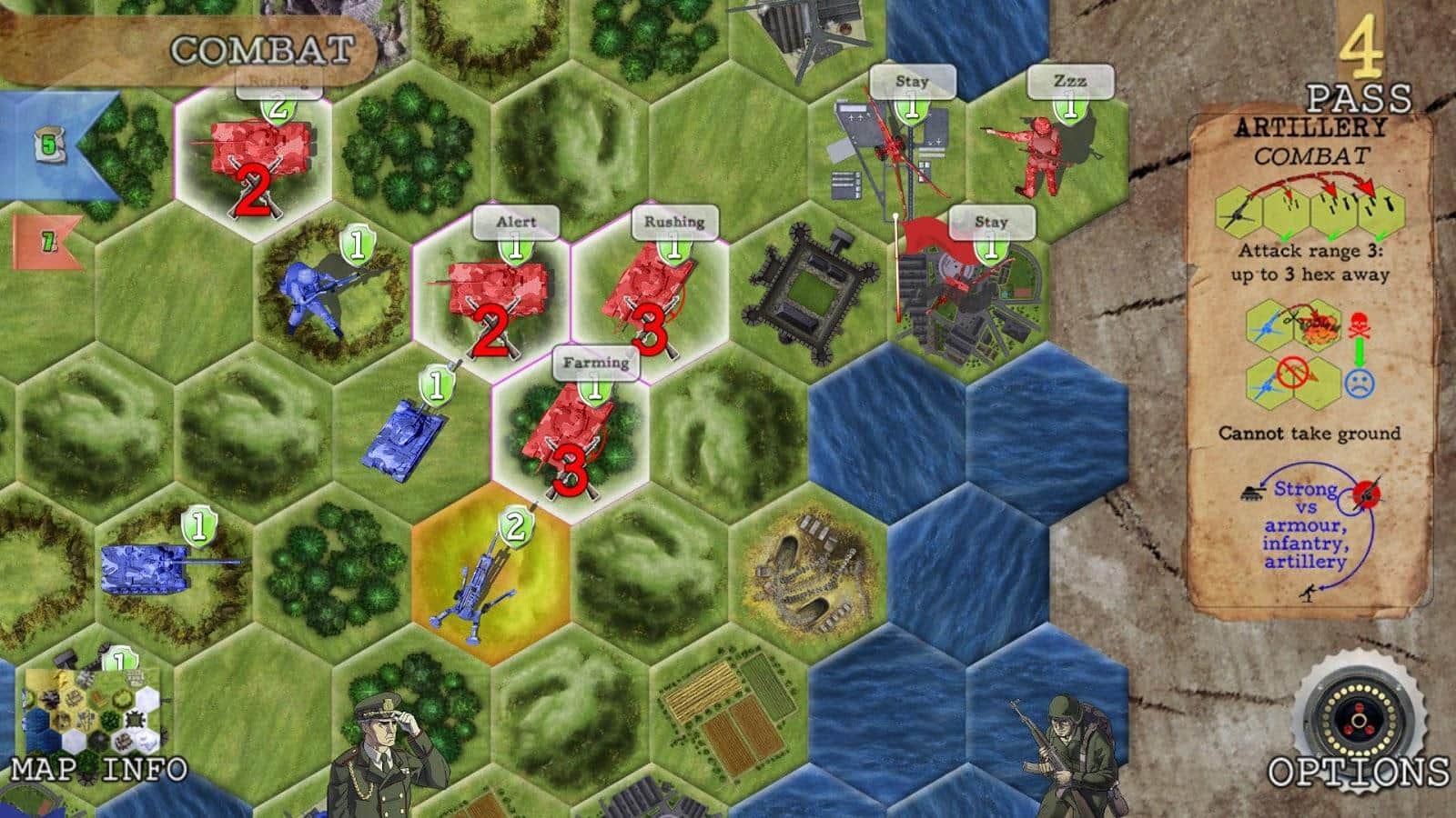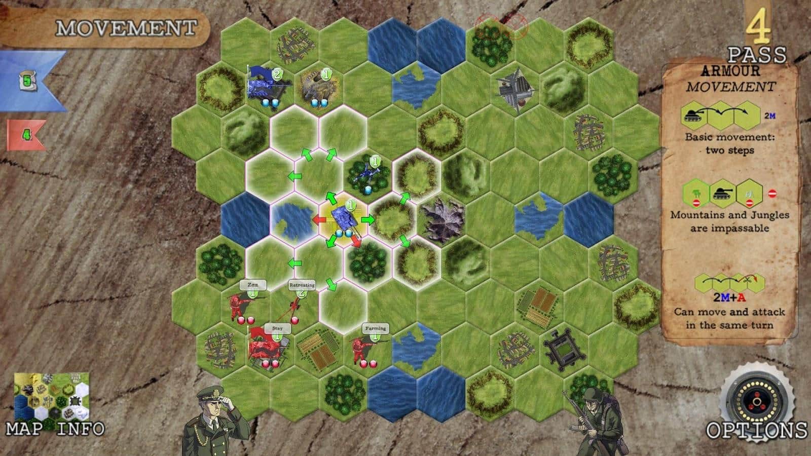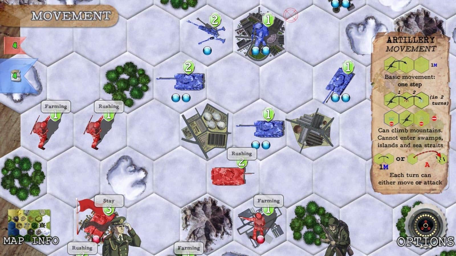 Retaliation Enemy Mine - a game that will be a real gift for fans of the classic Board strategy in step-by-step style. In General, the process is quite simple, the playing field is divided into hexagons, three types of units, infantry, armor and artillery, the task to defeat the enemy. However, in practice it is much more difficult due to the large number of influencing factors have to plan every move. Mining, different types of terrain, only about 21 different types of equipment, all affect the balance of defense and attack. All this will allow you to feel like a real commander and to demonstrate their skills in tactical and strategic planning. So, the developers have implemented several modes, multiplayer, company and of course a career that will allow each player to choose something for themselves.