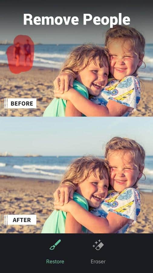 Retouch - Delete objects - Edit the necessary photos in a few movements with a simple eraser! Select a specific area to remove unwanted objects or details, and then look at the result and if something has improved wrong, perform the operation again. In this application, you can not only delete something specific, but also change the background by replacing it from the available list. After doing a tremendous job, you have the opportunity to save images in high quality and share them with friends!