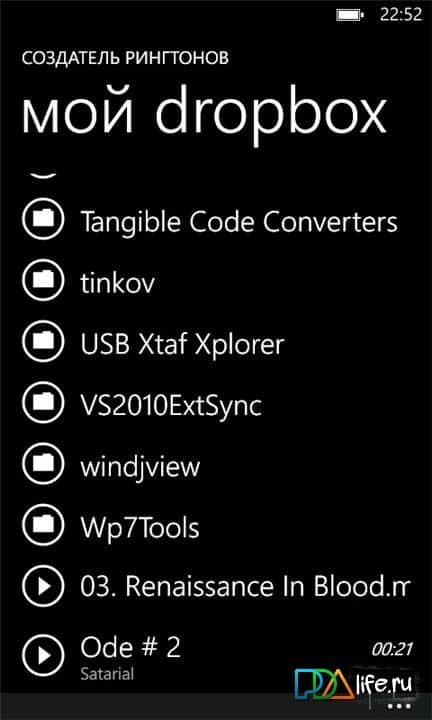 Ringtones - the program gives You the ability to set the call, your smartphone on windows phone 7, any tune. Create in minutes a ringtone from songs that are in the social network Vkontakte, SoundCloud, or another storage location. All you need to do is mark the beginning and end of a recording and click OK.