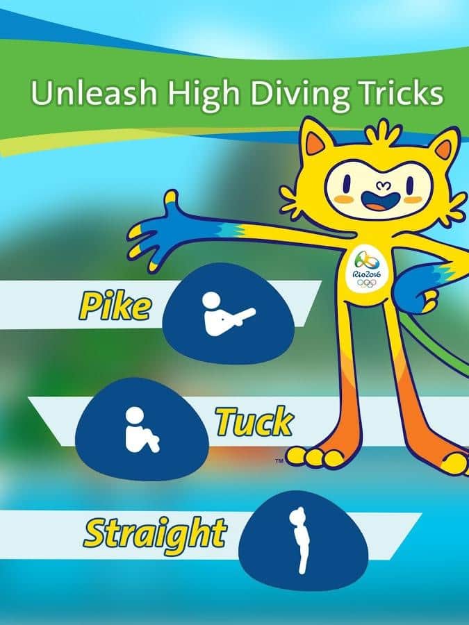 Rio 2016: Diving Champions / Rio 2016: Champions-divers - Developers are you crazy and very fun competitions. Become one of athlete of the national team of your country at the Olympic games in Rio jumping into the water. Unlock unique costumes, pass the qualifying round and took first place in the global leaderboard.