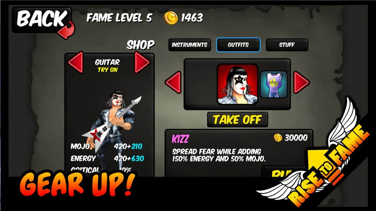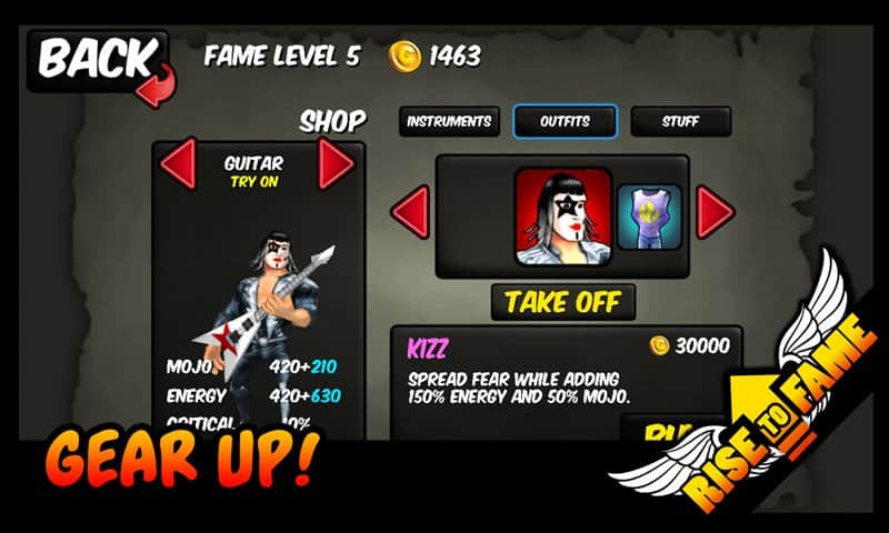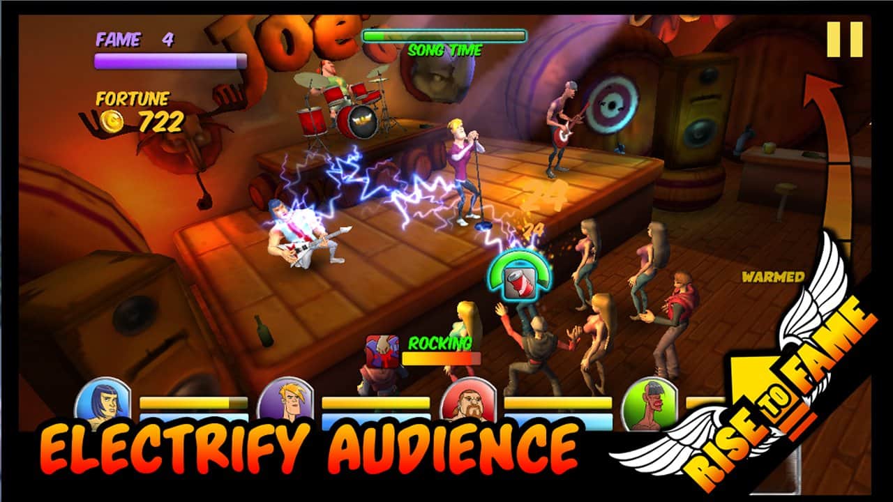 Rise To Fame - музыкальная rpg на андроид, где вы можете привести свою группу к славе. Пройдите путь от гаражной группы до почитаемой и известной во всём мире рок-группы. Играйте качественную музыку, ломайте на публику свою гитару, охмуряйте своих фанатов, вообщем видите жизнь обычной рок звезды.